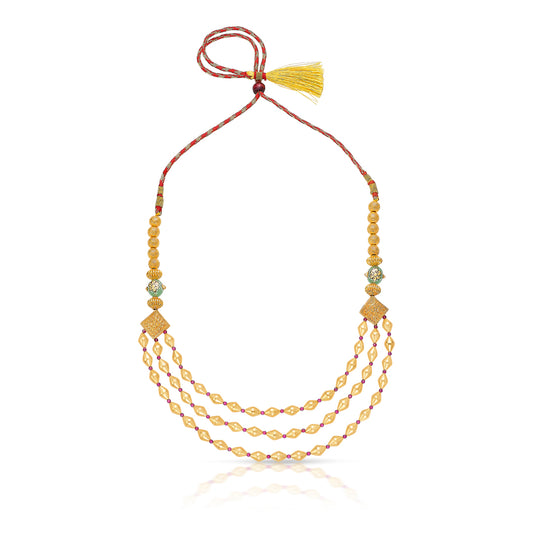 Check out our 22 Karat (916) BSI Hallmarked Gold Yellow Tri-Layer Harmony Necklace. It's ideal for daily wear or as a special gift. Great for birthdays, anniversaries, or Rakshabandhan, this Gold Tri-Layer Harmony Necklace is made to be treasured. It's versatile enough for both festive and casual looks, adding elegance to any outfit. You'll receive it in secure, tamper-proof packaging, ensuring safety and peace of mind. Additionally, it comes with a lifetime warranty and a convenient buyback policy at our stores across India, making it the perfect thoughtful gift.