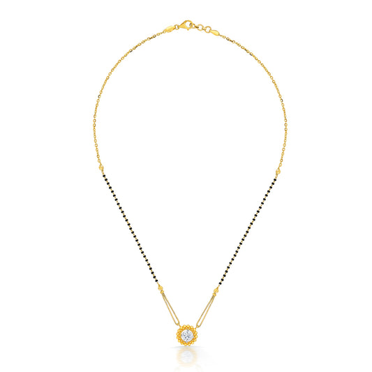 This Vibrant Petals Mangalsutra is made in 22 Karat (916) BSI Hallmarked Purity of Gold. Jewellery comes with inscription of Gold, Purity , Jeweller's Identity Name.This is perfect for casual wear and ideal for festive gifting.