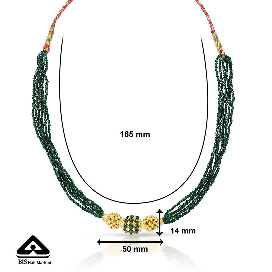 Check out our 22 Karat (916) BSI Hallmarked Yellow Gold Green Radiance Necklace. It's ideal for daily wear or as a special gift. Great for birthdays, anniversaries, or Rakshabandhan, this Gold Green Radiance Necklace is made to be treasured. It's versatile enough for both festive and casual looks, adding elegance to any outfit. You'll receive it in secure, tamper-proof packaging, ensuring safety and peace of mind. Additionally, it comes with a lifetime warranty and a convenient buyback policy at our stores across India, making it the perfect thoughtful gift.