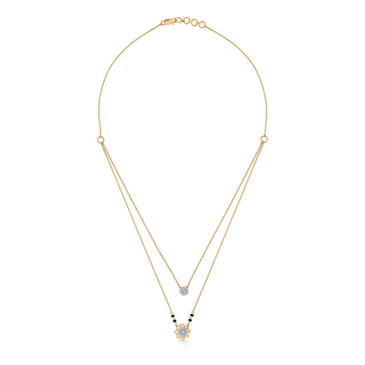 Check out our 18 Karat Gold & Diamond mangalsutra, perfect for every woman. With BIS-certified purity and adorned with VVS-FG Certified clarity diamonds, it's ideal for daily wear or as a special gift. Great for birthdays, and anniversaries, this Mangalsutra is made to be treasured. It's versatile enough for festive and casual looks, adding elegance to any outfit. You'll receive it in secure, tamper-proof packaging, ensuring safety and peace of mind. Additionally, it comes with a lifetime warranty and a convenient buyback policy at our stores across India, making it the perfect thoughtful gift.
