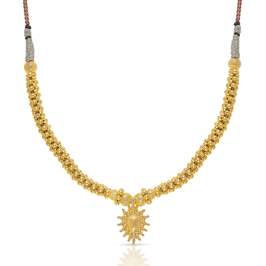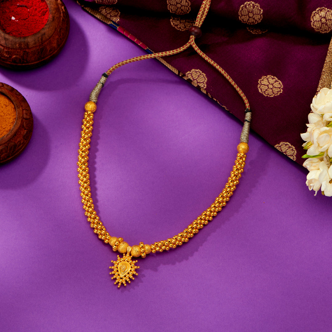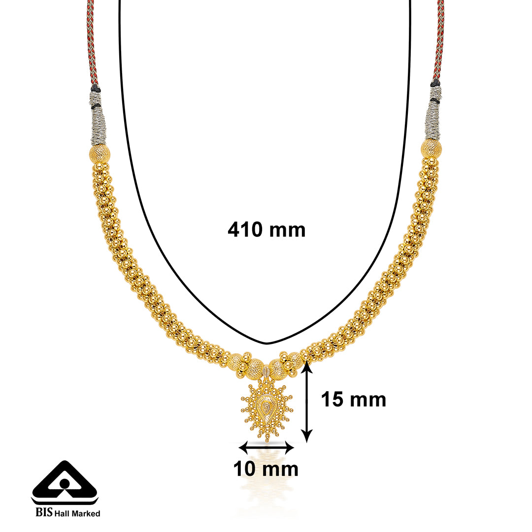 Check out our 22 Karat (916) BIS Hallmarked Yellow Gold Kolhapuri Thushi. It's ideal for daily wear or as a special gift. Great for birthdays, anniversaries, or Rakshabandhan, this BIS Hallmarked Kolhapuri Thushi is made to be treasured. It's versatile enough for both festive and casual looks, adding elegance to any outfit. You'll receive it in secure, tamper-proof packaging, ensuring safety and peace of mind. Additionally, it comes with a lifetime warranty and a convenient buyback policy at our stores across India, making it the perfect thoughtful gift.