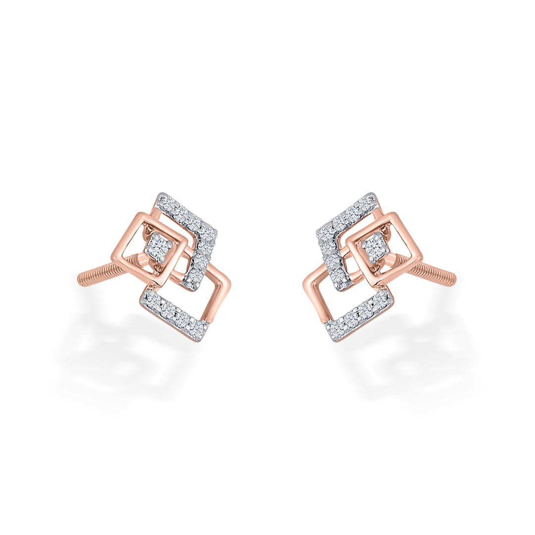 Twinkle Squares Gold Stud Diamond Earring for Woman