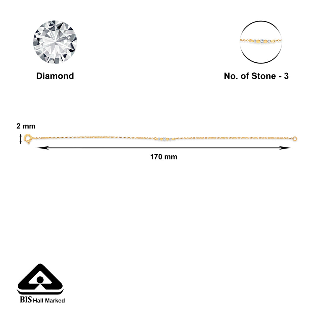 Check out our 14 Karat Gold & Diamond Flexible Bracelet, perfect for every woman. With BIS-certified purity and adorned with 3 Pcs of IJ/SI Certified clarity diamonds, it's ideal for daily wear or as a special gift. Great for birthdays, anniversaries, or Rakshabandhan, this ring is made to be treasured. It's versatile enough for both festive and casual looks, adding elegance to any outfit. You'll receive it in secure, tamper-proof packaging, ensuring safety and peace of mind. Additionally, it comes with a lifetime warranty and a convenient buyback policy at our stores across India, making it the perfect thoughtful gift.