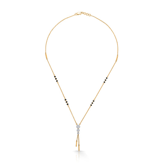A symbol of love and commitment, this diamond mangalsutra combines timeless elegance with modern craftsmanship. Each sparkling diamond is thoughtfully set to create a piece that is both radiant and enduring, perfect for celebrating your most cherished bond.