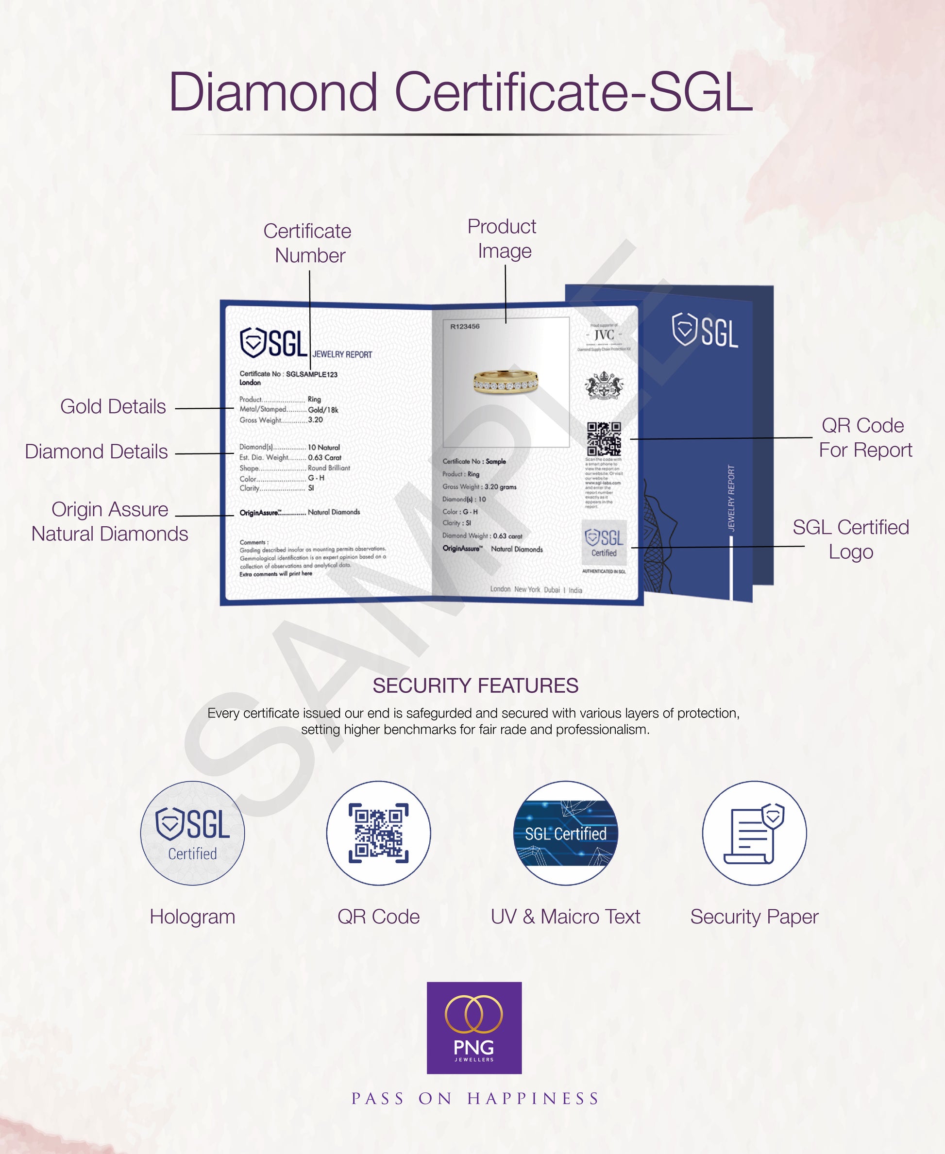 Check out our 18KT gold diamond ring, perfect for every woman. With BIS-certified purity and adorned with 5 Pcs of IJ-SI Certified clarity diamonds, it's ideal for daily wear or as a special gift. Great for birthdays, anniversaries, or Rakshabandhan, this ring is made to be treasured. It's versatile enough for both festive and casual looks, adding elegance to any outfit. You'll receive it in secure, tamper-proof packaging, ensuring safety and peace of mind. Additionally, it comes with a lifetime warranty and a convenient buyback policy at our stores across India, making it the perfect thoughtful gift