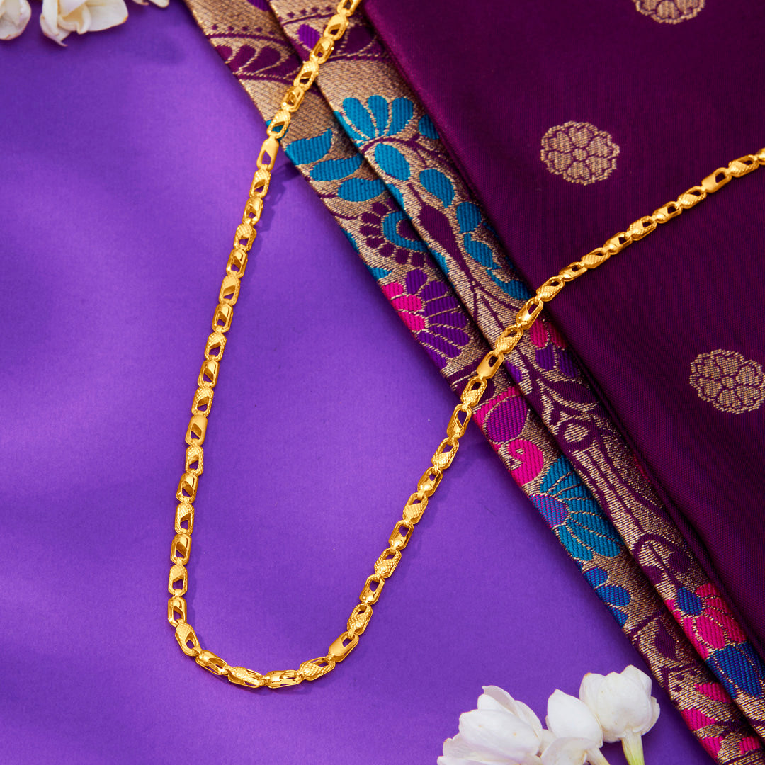 This Gilded Harmony Chain is made in 22 Karat (916) BSI Hallmarked Purity of Gold. Jewellery comes with inscription of Gold, Purity , Jeweller's Identity Name.This is perfect for casual wear and ideal for festive gifting.