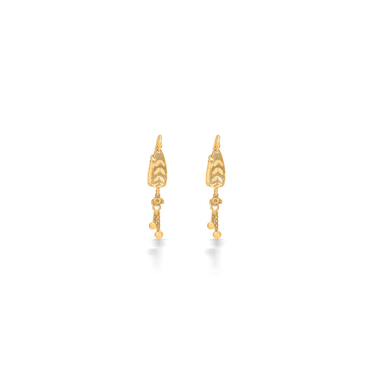These stylish gold earrings are designed with a clean, minimal look that adds a modern touch to any outfit. Lightweight and comfortable, they are perfect for daily wear as well as special occasions. The elegant design makes them a versatile choice that pairs well with both traditional and western outfits.