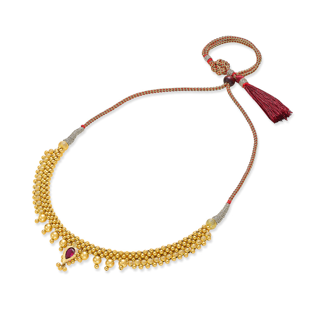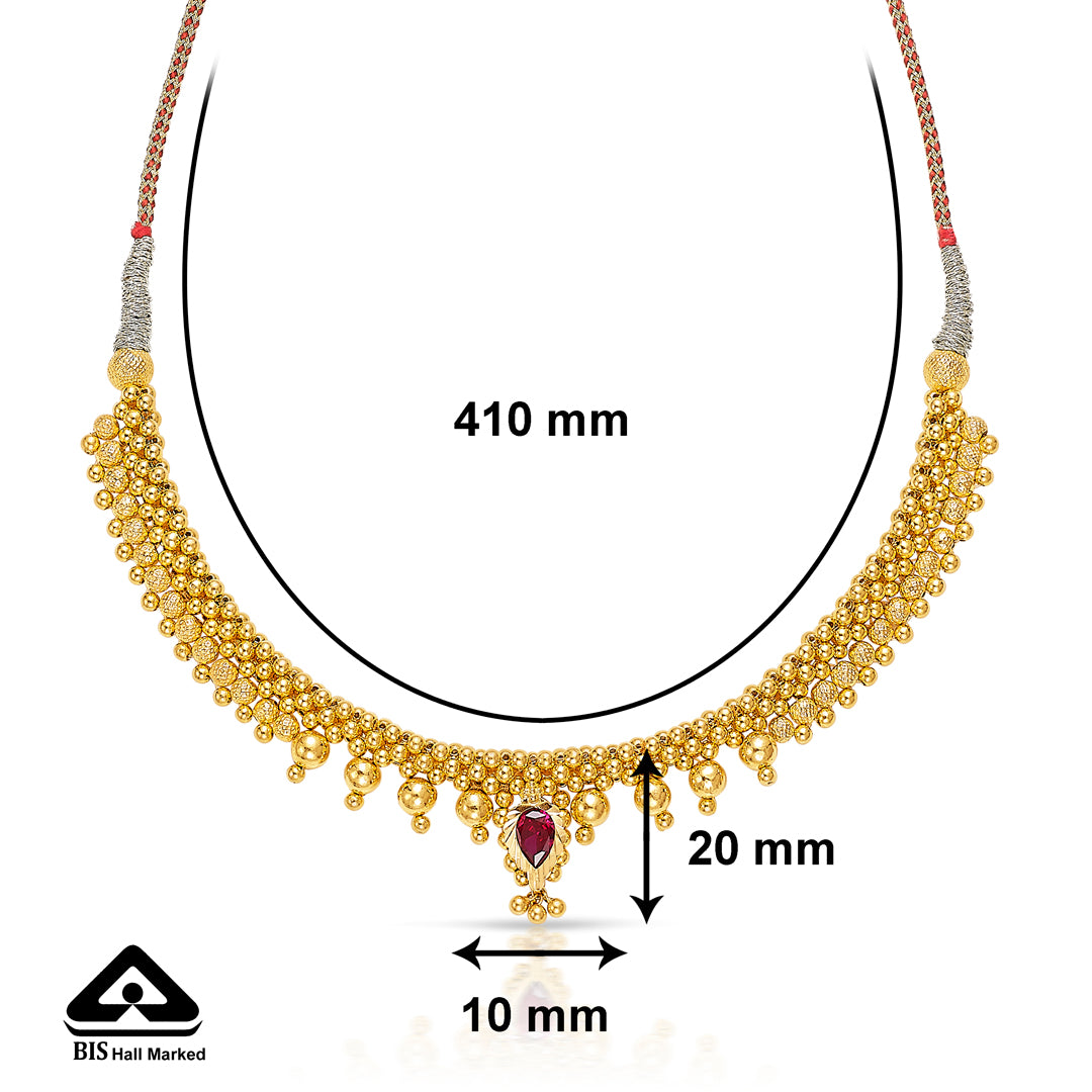 Check out our 22 Karat (916) BIS Hallmarked Yellow Gold Kolhapuri Thushi. It's ideal for daily wear or as a special gift. Great for birthdays, anniversaries, or Rakshabandhan, this BIS Hallmarked Kolhapuri Thushi is made to be treasured. It's versatile enough for both festive and casual looks, adding elegance to any outfit. You'll receive it in secure, tamper-proof packaging, ensuring safety and peace of mind. Additionally, it comes with a lifetime warranty and a convenient buyback policy at our stores across India, making it the perfect thoughtful gift.