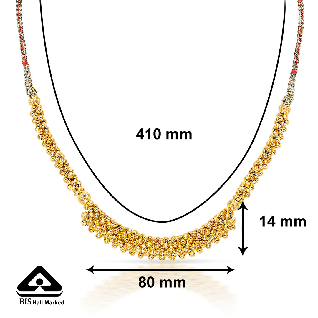 Check out our 22 Karat (916) BIS Hallmarked Yellow Gold Kolhapuri Thushi. It's ideal for daily wear or as a special gift. Great for birthdays, anniversaries, or Rakshabandhan, this BIS Hallmarked Kolhapuri Thushi is made to be treasured. It's versatile enough for both festive and casual looks, adding elegance to any outfit. You'll receive it in secure, tamper-proof packaging, ensuring safety and peace of mind. Additionally, it comes with a lifetime warranty and a convenient buyback policy at our stores across India, making it the perfect thoughtful gift.