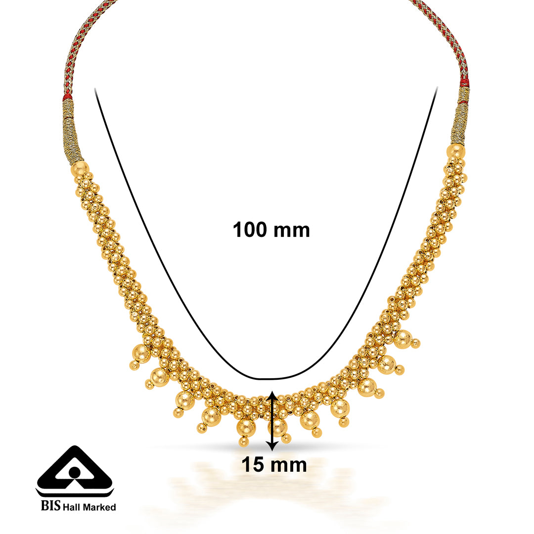 Check out our 22 Karat (916) BSI Hallmarked Yellow Gold Swarna Ganga Necklace. It's ideal for daily wear or as a special gift. Great for birthdays, anniversaries, or Rakshabandhan, this Gold Swarna Ganga Necklace is made to be treasured. It's versatile enough for both festive and casual looks, adding elegance to any outfit. You'll receive it in secure, tamper-proof packaging, ensuring safety and peace of mind. Additionally, it comes with a lifetime warranty and a convenient buyback policy at our stores across India, making it the perfect thoughtful gift.