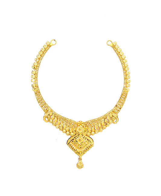 Check out our 22 Karat (916) BSI Hallmarked Gold Yellow Ornate Necklace. It's ideal for daily wear or as a special gift. Great for birthdays, anniversaries, or Rakshabandhan, this Gold Ornate Necklace is made to be treasured. It's versatile enough for both festive and casual looks, adding elegance to any outfit. You'll receive it in secure, tamper-proof packaging, ensuring safety and peace of mind. Additionally, it comes with a lifetime warranty and a convenient buyback policy at our stores across India, making it the perfect thoughtful gift.
