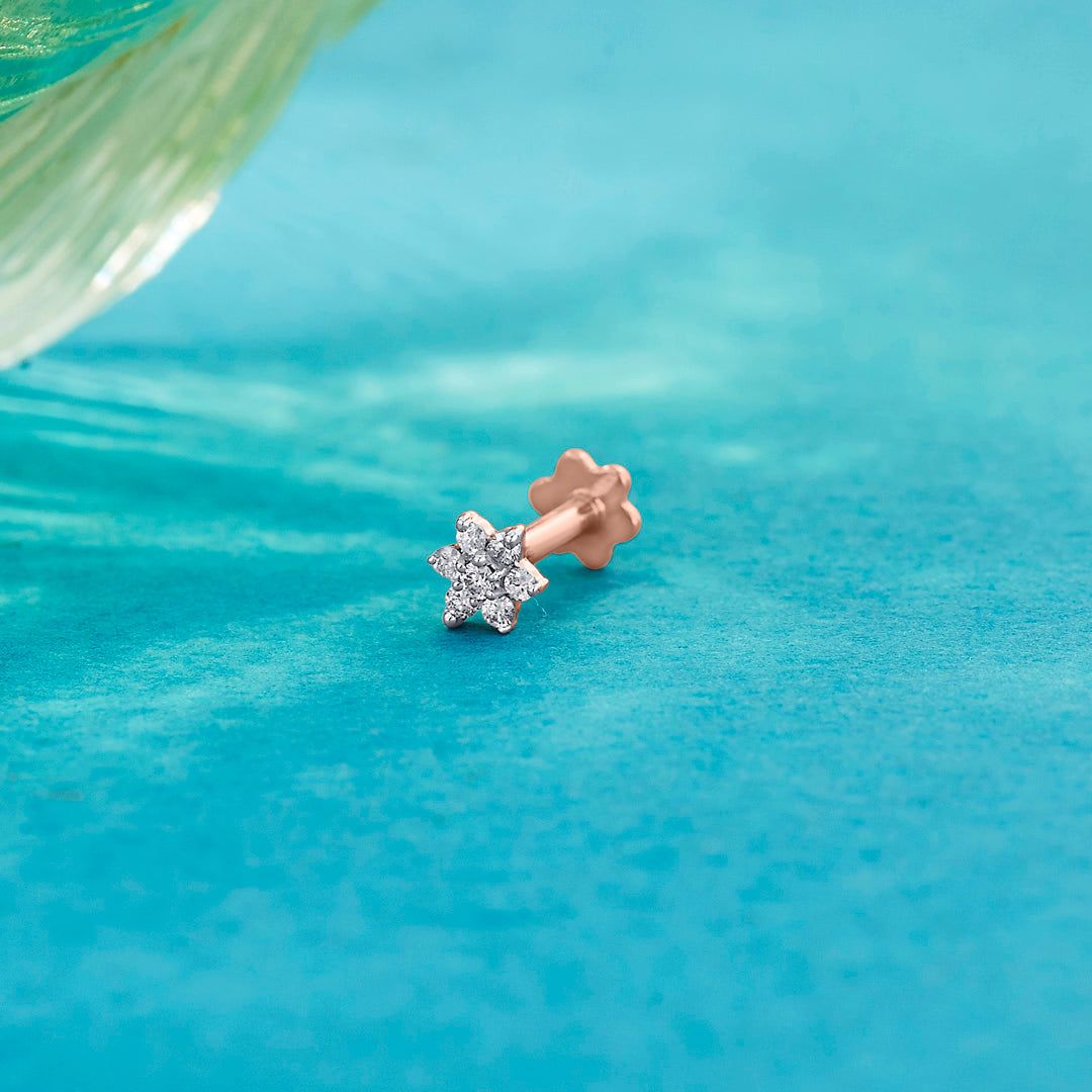 A delicate nose pin crafted in gold with a sparkling diamond at the center. Its minimal and elegant design makes it perfect for everyday wear and special occasions.
