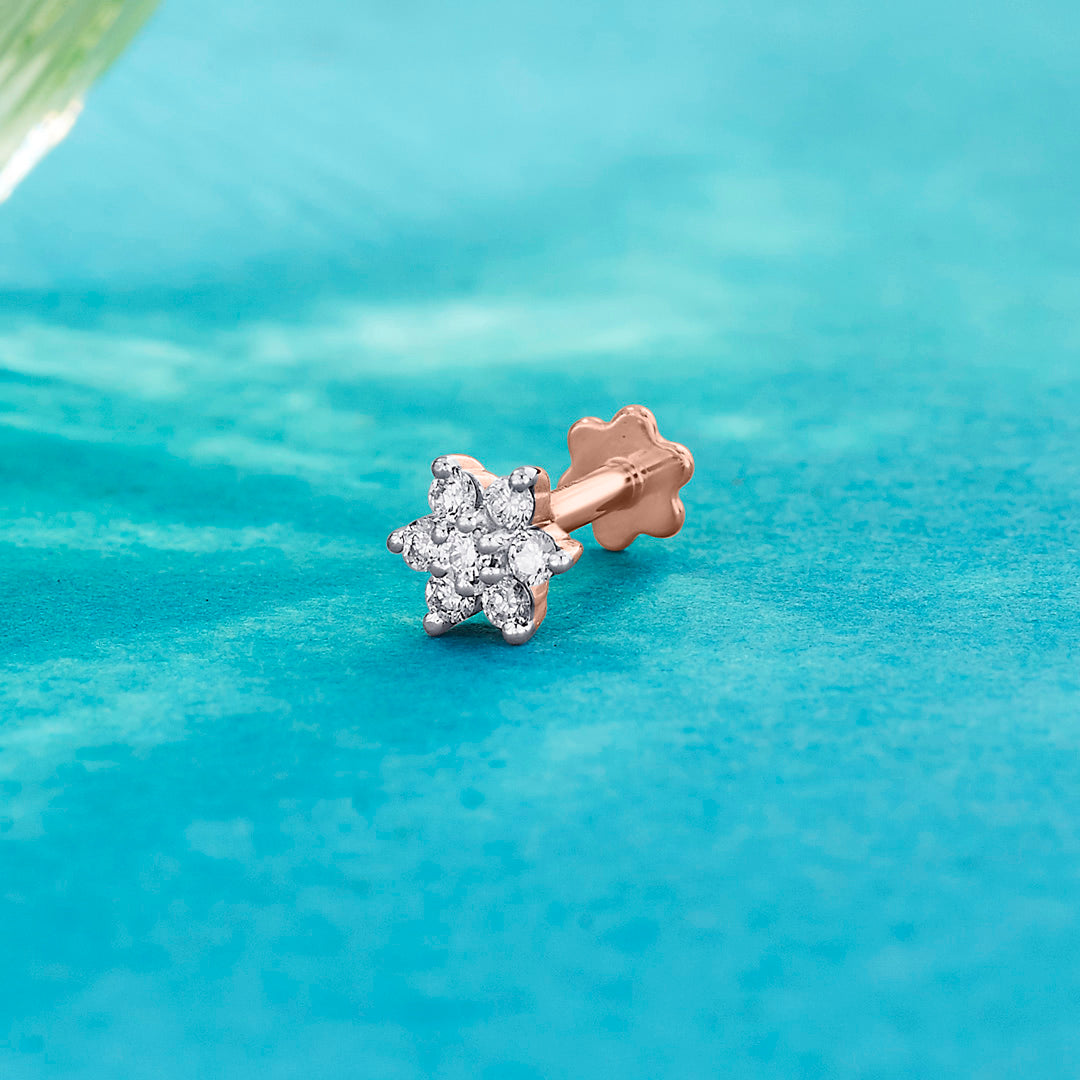 A delicate nose pin crafted in gold with a sparkling diamond at the center. Its minimal and elegant design makes it perfect for everyday wear and special occasions.