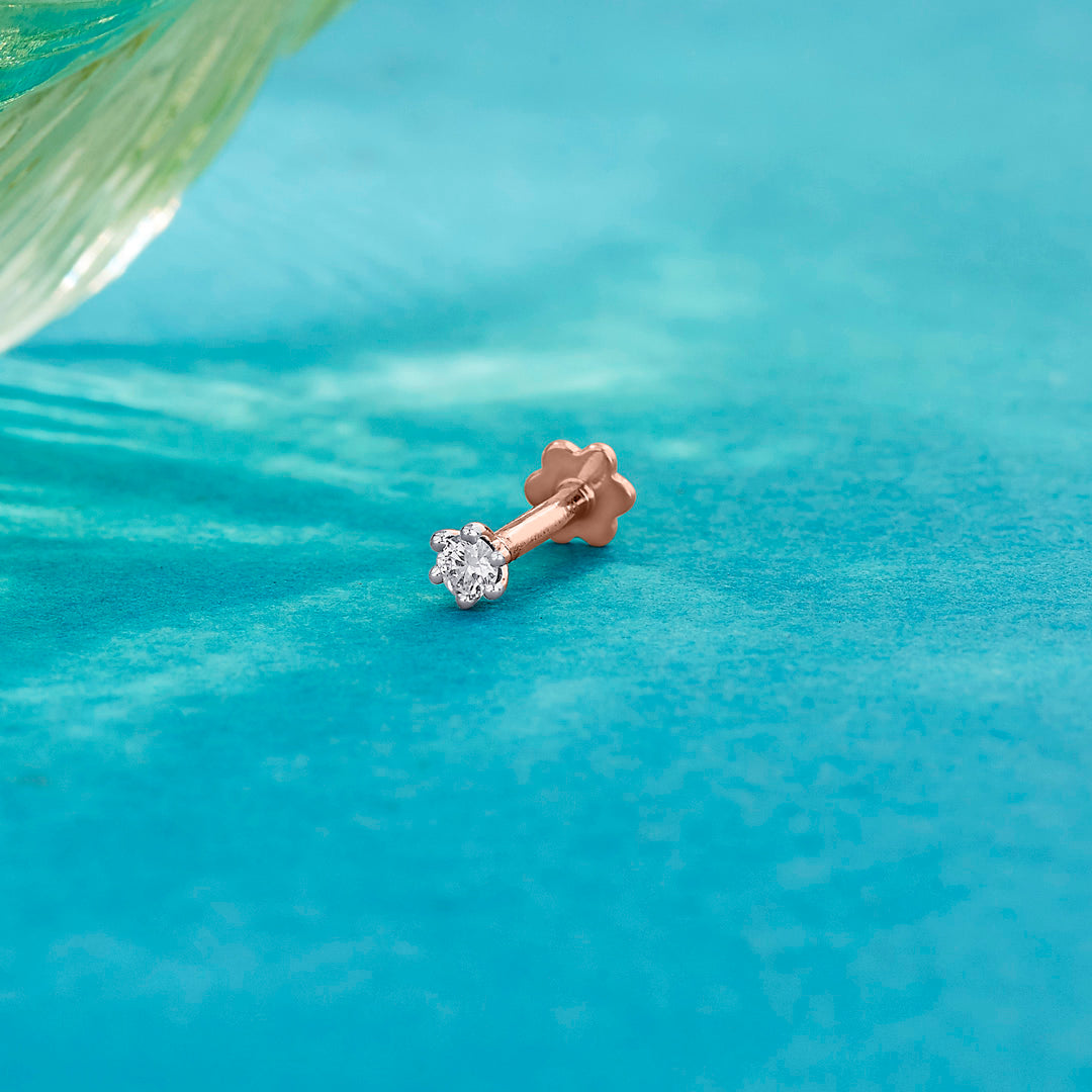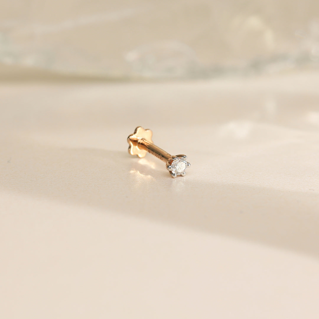 A delicate nose pin crafted in gold with a sparkling diamond at the center. Its minimal and elegant design makes it perfect for everyday wear and special occasions.