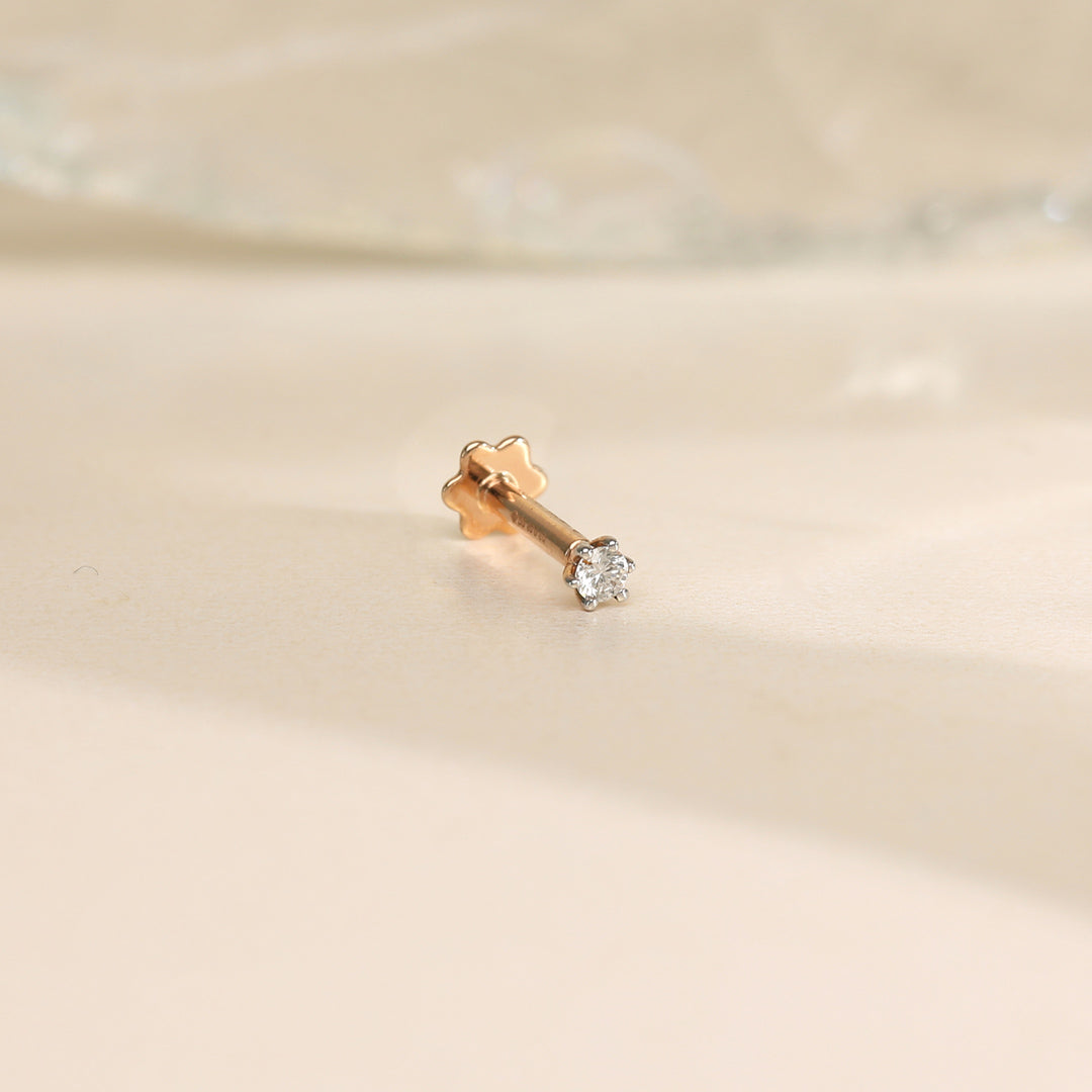 A delicate nose pin crafted in gold with a sparkling diamond at the center. Its minimal and elegant design makes it perfect for everyday wear and special occasions.