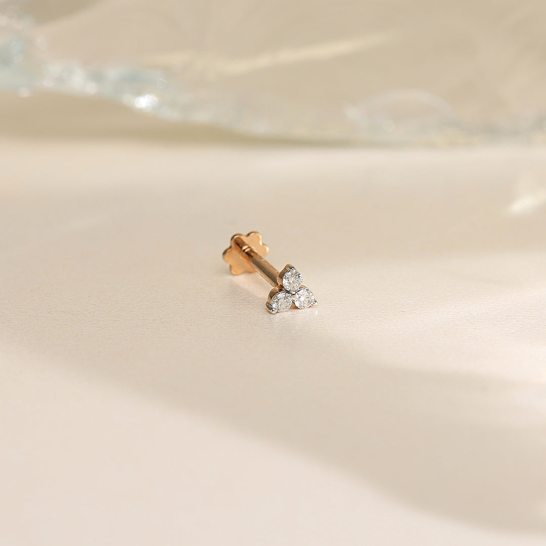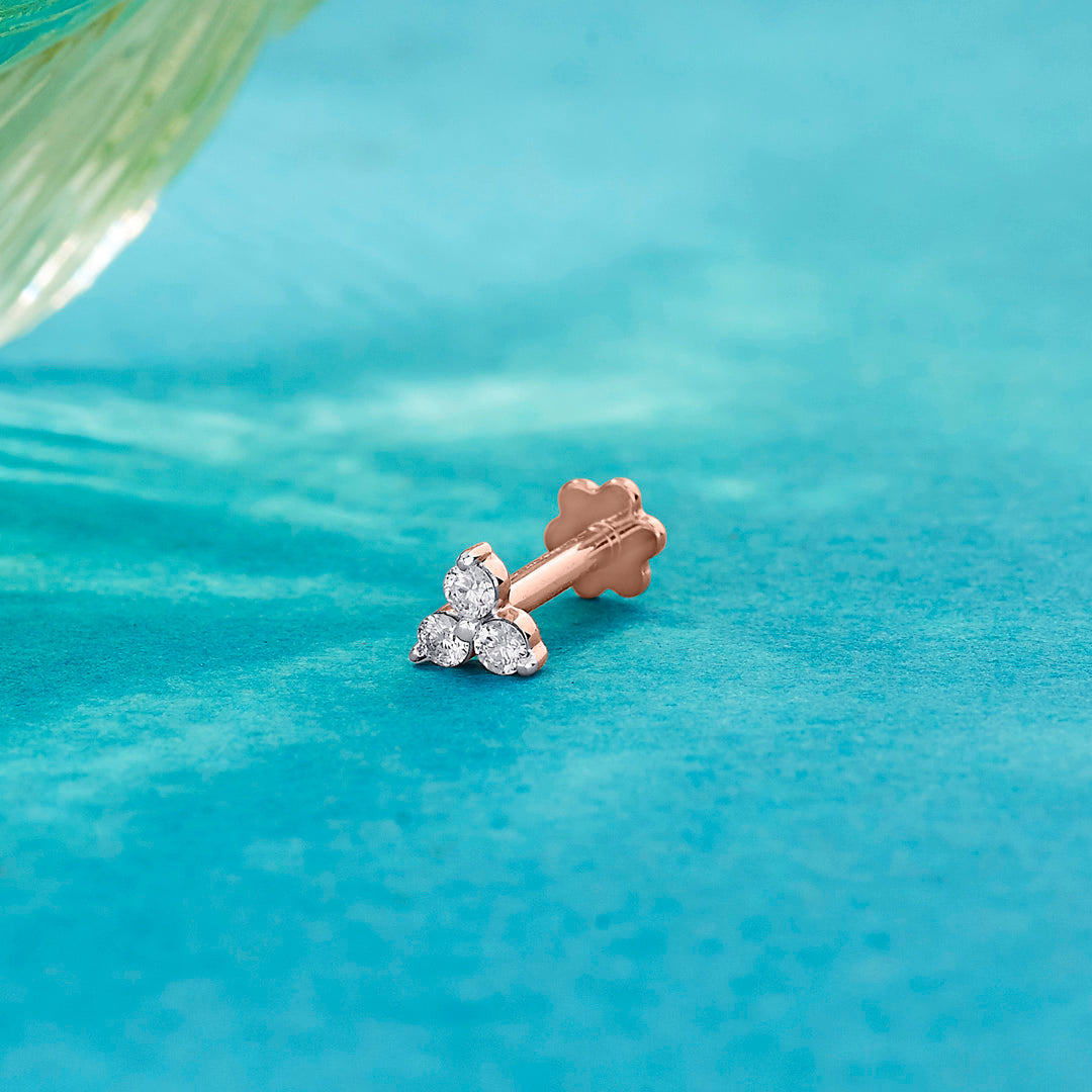 A delicate nose pin crafted in gold with a sparkling diamond at the center. Its minimal and elegant design makes it perfect for everyday wear and special occasions.