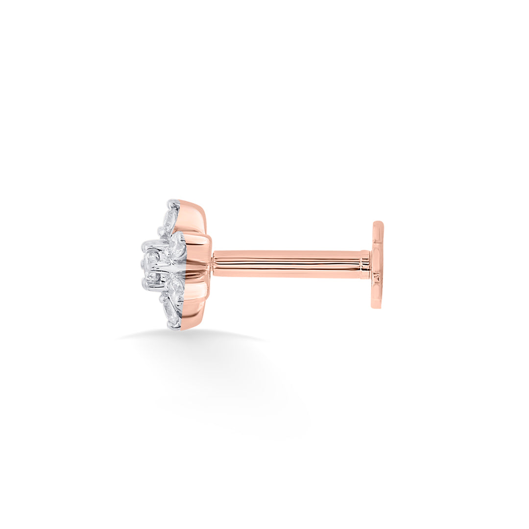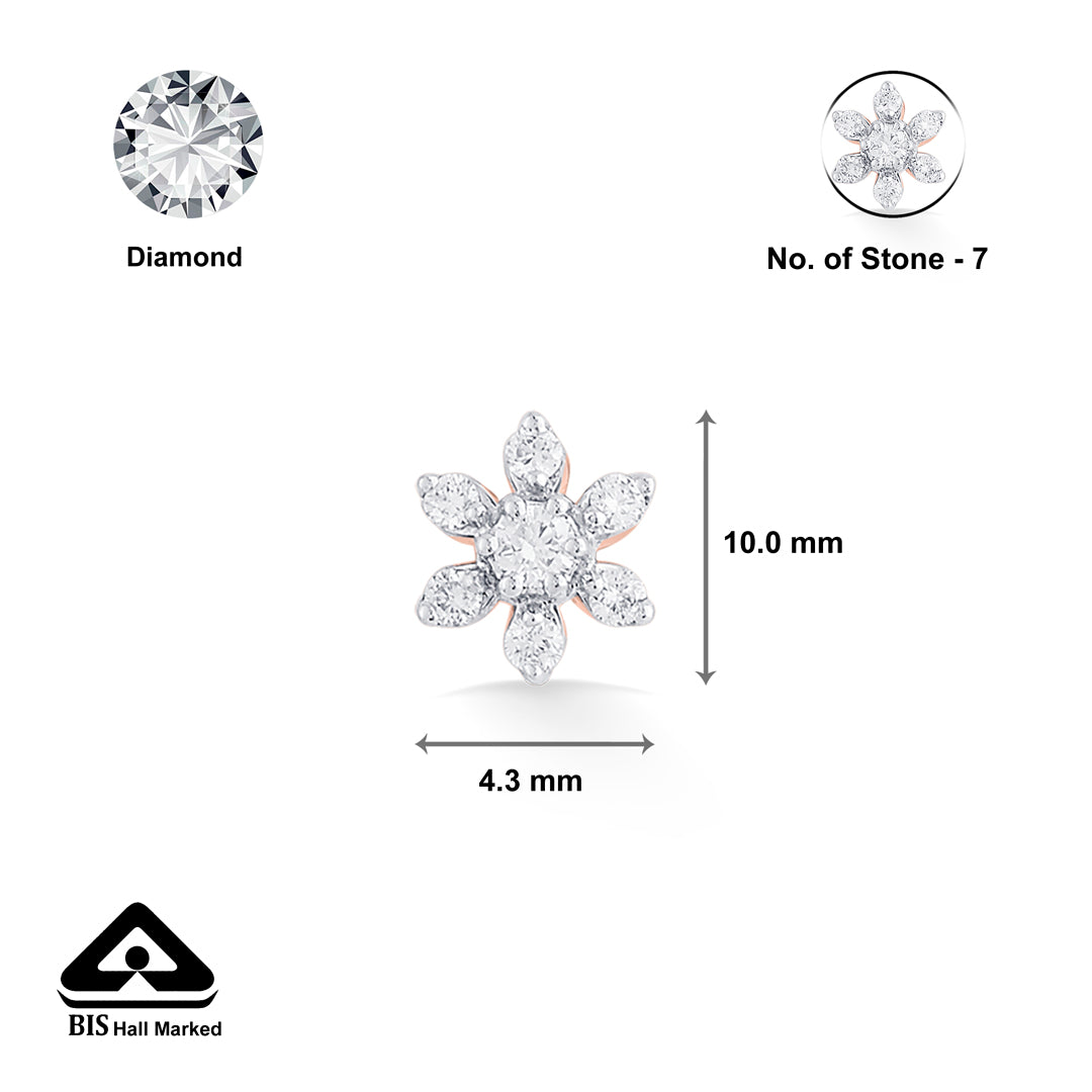 A delicate nose pin crafted in gold with a sparkling diamond at the center. Its minimal and elegant design makes it perfect for everyday wear and special occasions.