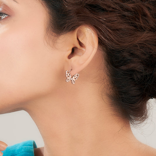 These butterfly earrings bring a touch of beauty and grace to any look. Designed in a delicate butterfly shape, they symbolize freedom and elegance. Crafted in gold, they are lightweight and comfortable for everyday wear or special occasions.