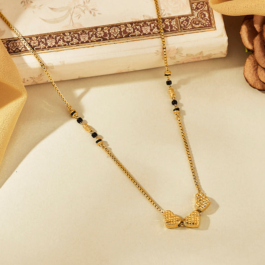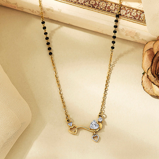 Designed with love, this heart mangalsutra is a perfect blend of tradition and modern elegance. The delicate heart motif symbolizes eternal love, while the classic black beads add a timeless charm.