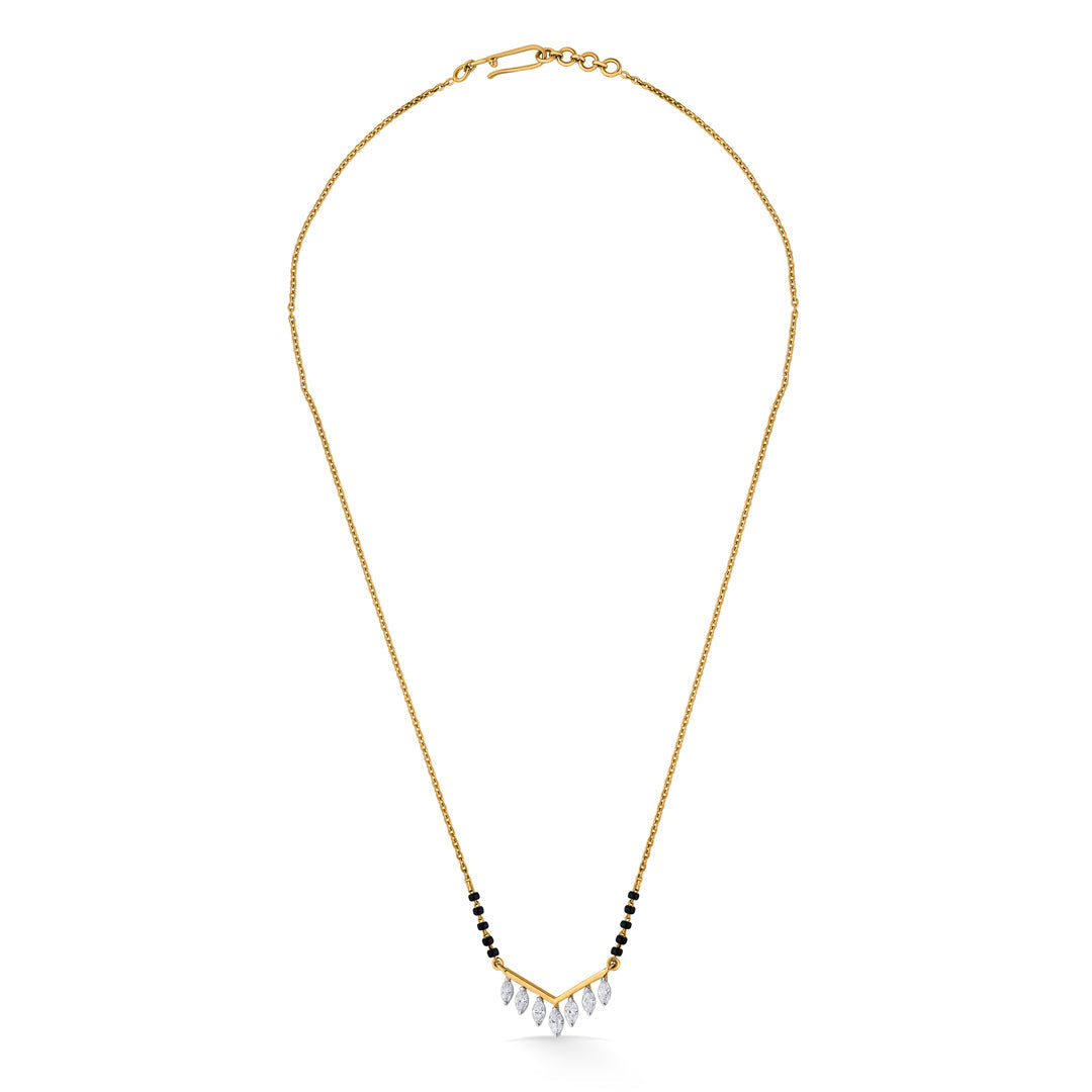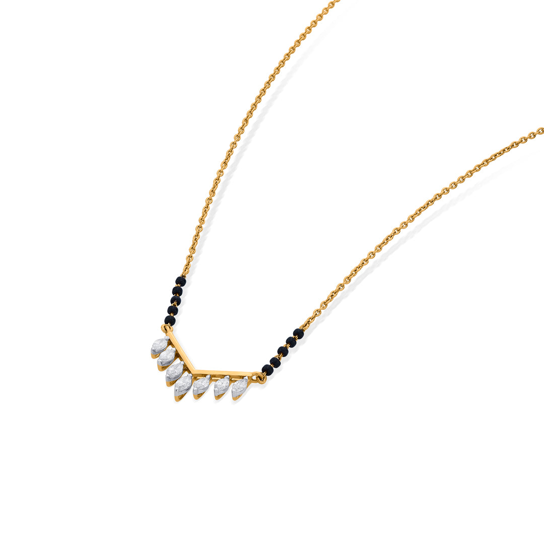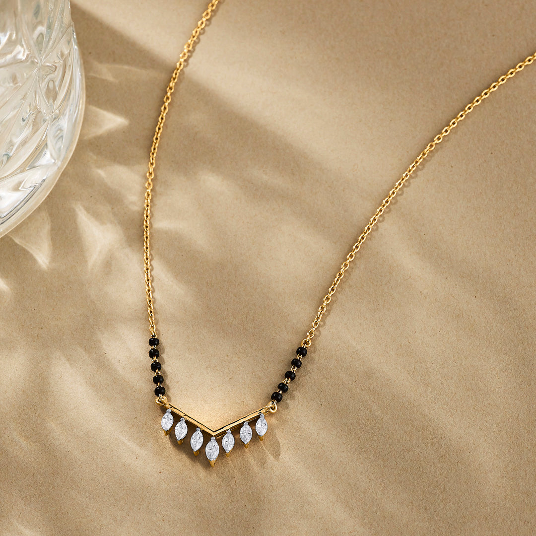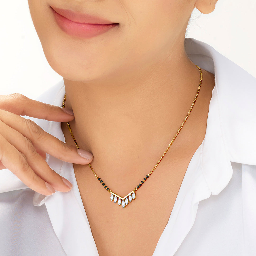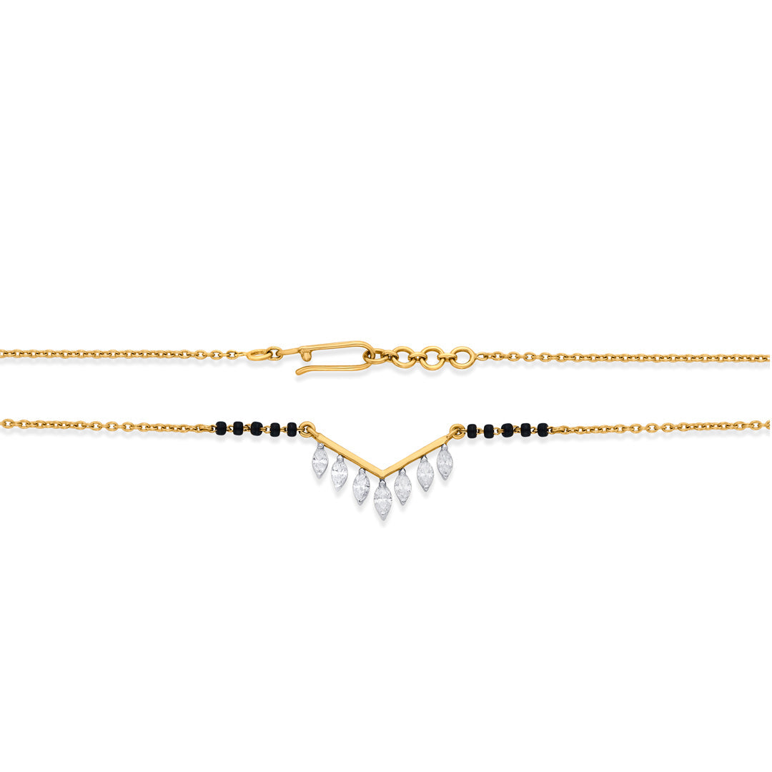 This lightweight modern mangalsutra is simple, sleek, and perfect for daily wear. Made with fine gold and minimal black beads, it offers a stylish touch without being heavy. Ideal for women who prefer a modern yet meaningful design.