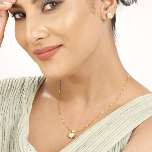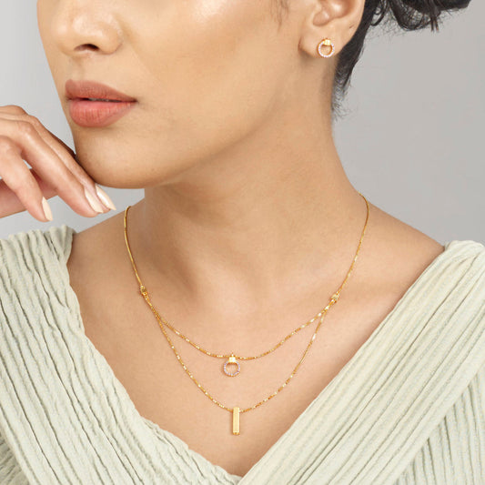 Add a touch of contemporary charm to your look with our Gold Necklace Set. Crafted with sleek design and minimal weight, it offers the perfect blend of comfort and sophistication. The delicate detailing and refined finish make it ideal for both daily wear and special occasions. Paired with matching earrings, this set brings modern elegance to your jewellery collection. Effortlessly stylish, beautifully versatile.