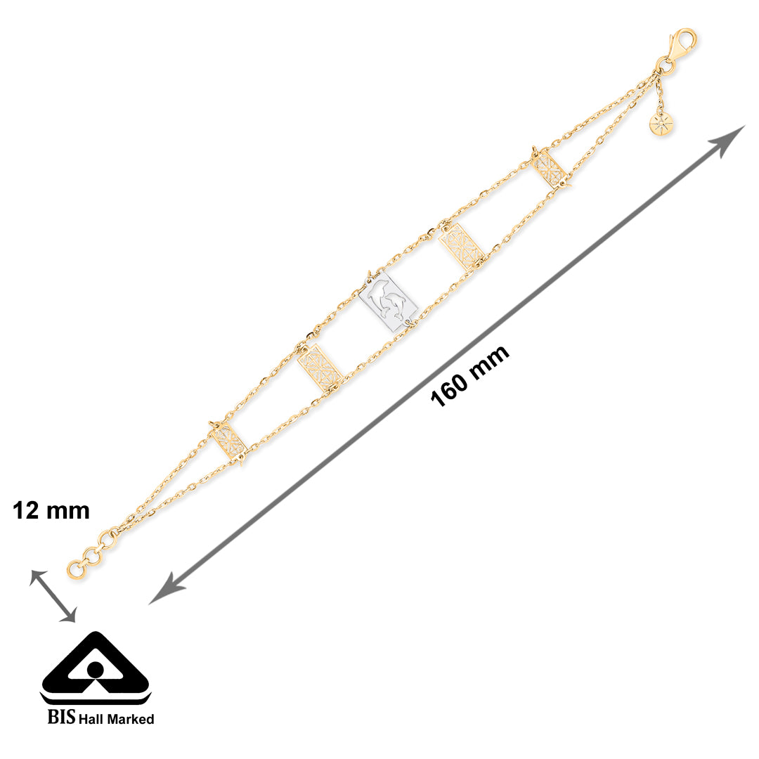 Check out our 22 Karat (916) BSI Hallmarked Yellow Gold Majestic Frames Bracelet. It's ideal for daily wear or as a special gift. Great for birthdays, anniversaries, or Rakshabandhan, this Gold Bracelet is made to be treasured. It's versatile enough for both festive and casual looks, adding elegance to any outfit. You'll receive it in secure, tamper-proof packaging, ensuring safety and peace of mind. Additionally, it comes with a lifetime warranty and a convenient buyback policy at our stores across India, making it the perfect thoughtful gift.