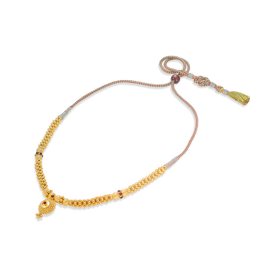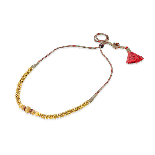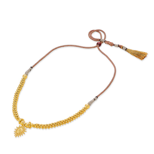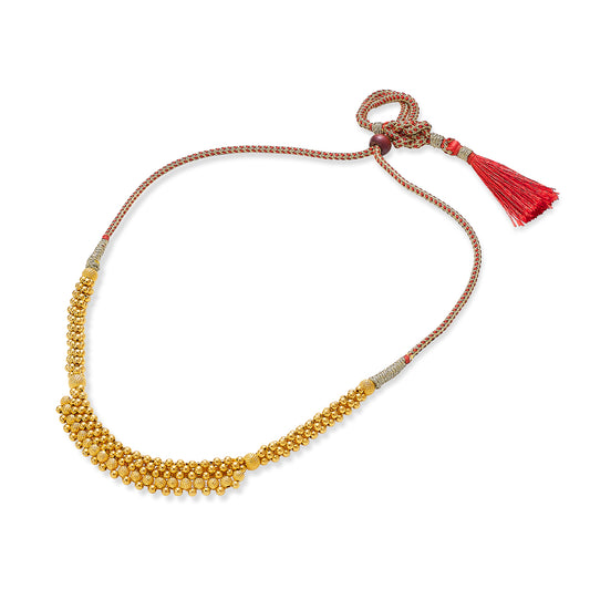 Check out our 22 Karat (916) BIS Hallmarked Yellow Gold Kolhapuri Thushi. It's ideal for daily wear or as a special gift. Great for birthdays, anniversaries, or Rakshabandhan, this BIS Hallmarked Kolhapuri Thushi is made to be treasured. It's versatile enough for both festive and casual looks, adding elegance to any outfit. You'll receive it in secure, tamper-proof packaging, ensuring safety and peace of mind. Additionally, it comes with a lifetime warranty and a convenient buyback policy at our stores across India, making it the perfect thoughtful gift.