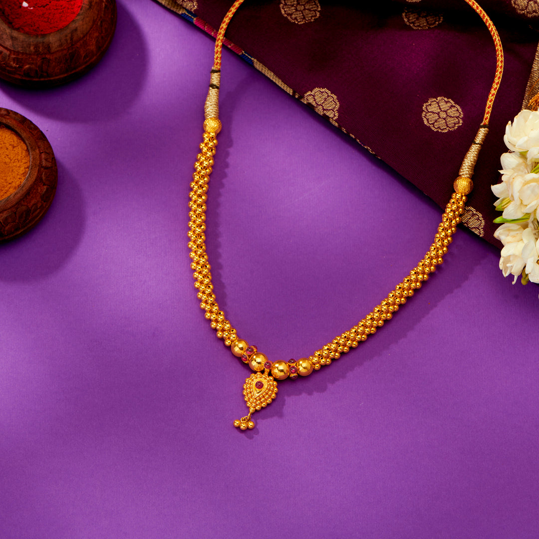 Check out our 22 Karat (916) BIS Hallmarked Yellow Gold Kolhapuri Thushi. It's ideal for daily wear or as a special gift. Great for birthdays, anniversaries, or Rakshabandhan, this BIS Hallmarked Kolhapuri Thushi is made to be treasured. It's versatile enough for both festive and casual looks, adding elegance to any outfit. You'll receive it in secure, tamper-proof packaging, ensuring safety and peace of mind. Additionally, it comes with a lifetime warranty and a convenient buyback policy at our stores across India, making it the perfect thoughtful gift.