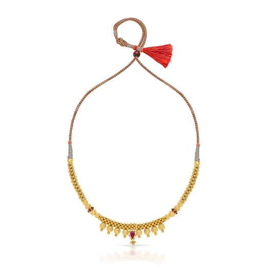 Check out our 22 Karat (916) BSI Hallmarked Gold Yellow Classic Mangalya Necklace. It's ideal for daily wear or as a special gift. Great for birthdays, anniversaries, or Rakshabandhan, this Gold Necklace is made to be treasured. It's versatile enough for both festive and casual looks, adding elegance to any outfit. You'll receive it in secure, tamper-proof packaging, ensuring safety and peace of mind. Additionally, it comes with a lifetime warranty and a convenient buyback policy at our stores across India, making it the perfect thoughtful gift.