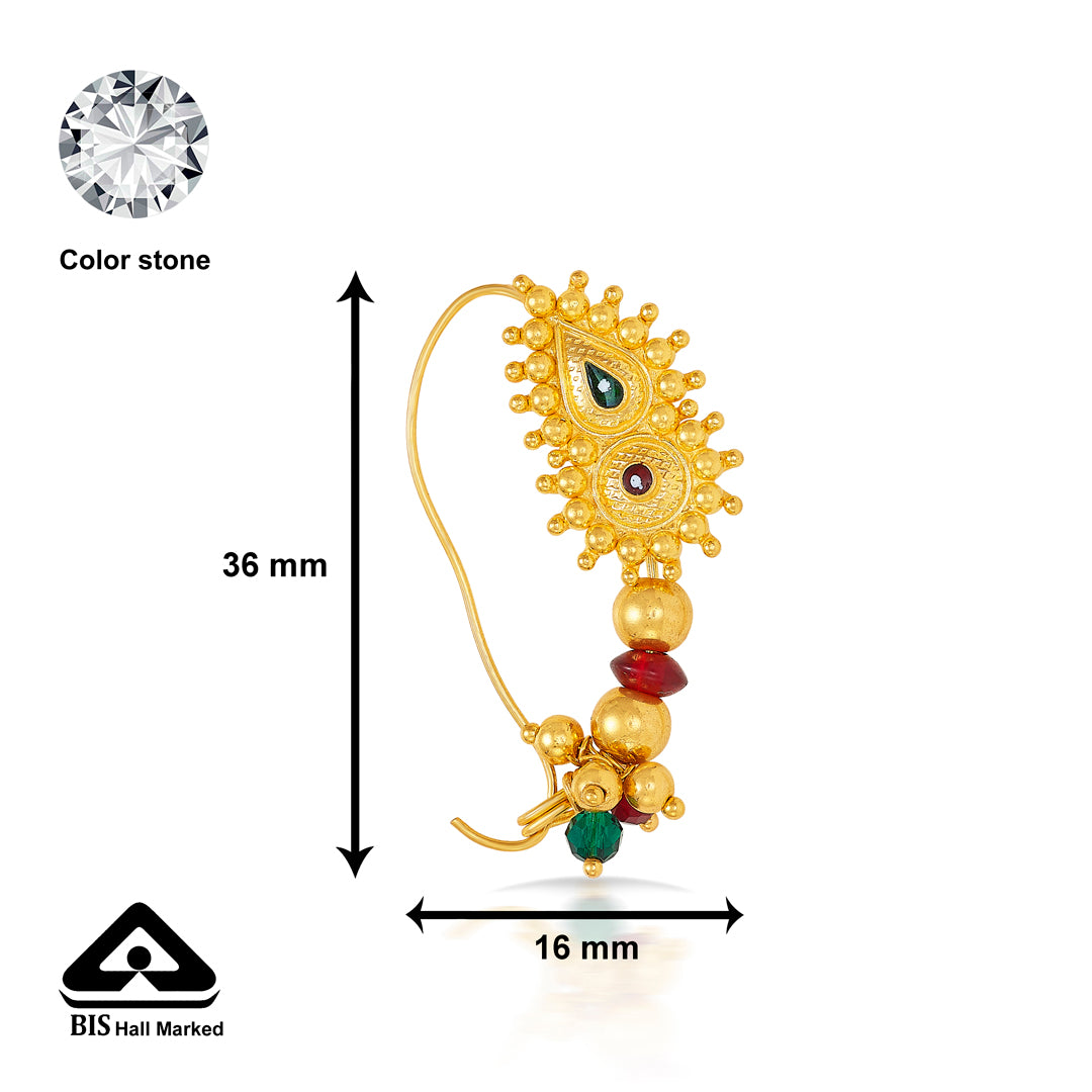 Check out our 22 Karat (916) BIS Hallmarked Yellow Gold Stone Studded Nath. It's ideal for daily wear or as a special gift. Great for birthdays, anniversaries, or Rakshabandhan, this BIS Hallmarked Stone Studded Nath is made to be treasured. It's versatile enough for both festive and casual looks, adding elegance to any outfit. You'll receive it in secure, tamper-proof packaging, ensuring safety and peace of mind. Additionally, it comes with a lifetime warranty and a convenient buyback policy at our stores across India, making it the perfect thoughtful gift.