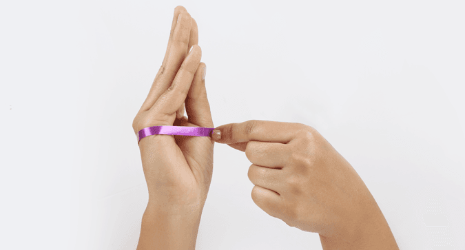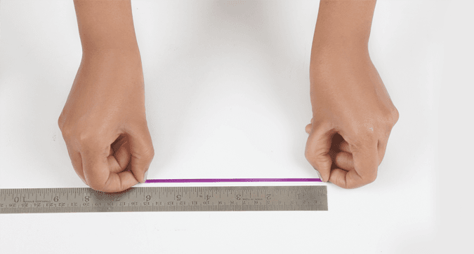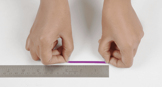 Cut a thin strip of paper or thread - Bring your thumb and little finger together and measure where your hand is the widest. - Mark the spot where the thread meets.
