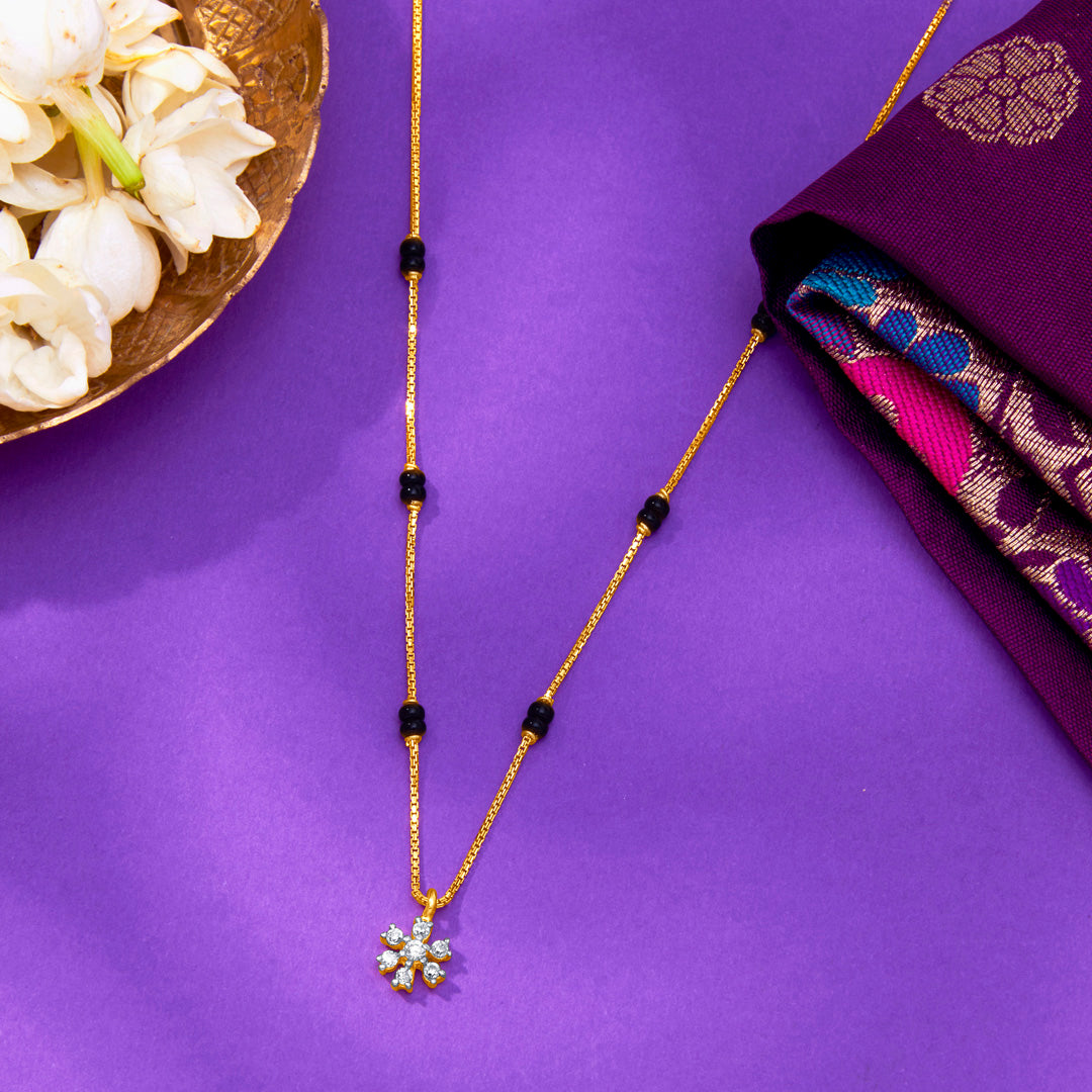 This Blooming Love Mangalsutra is made in 22 Karat (916) BSI Hallmarked Purity of Gold. Jewellery comes with inscription of Gold, Purity , Jeweller's Identity Name.This is perfect for casual wear and ideal for festive gifting.
