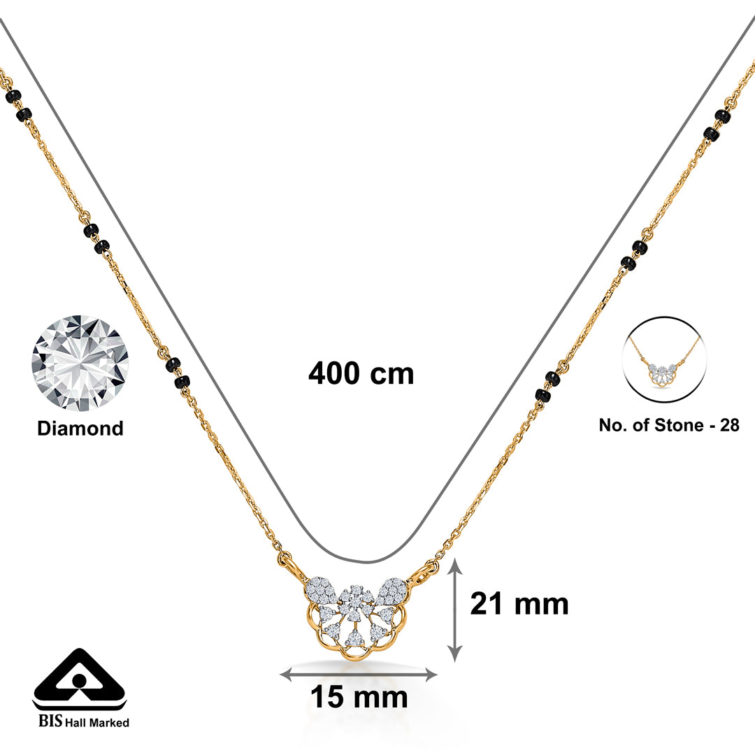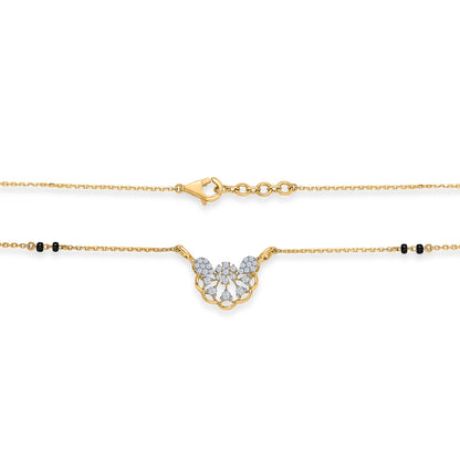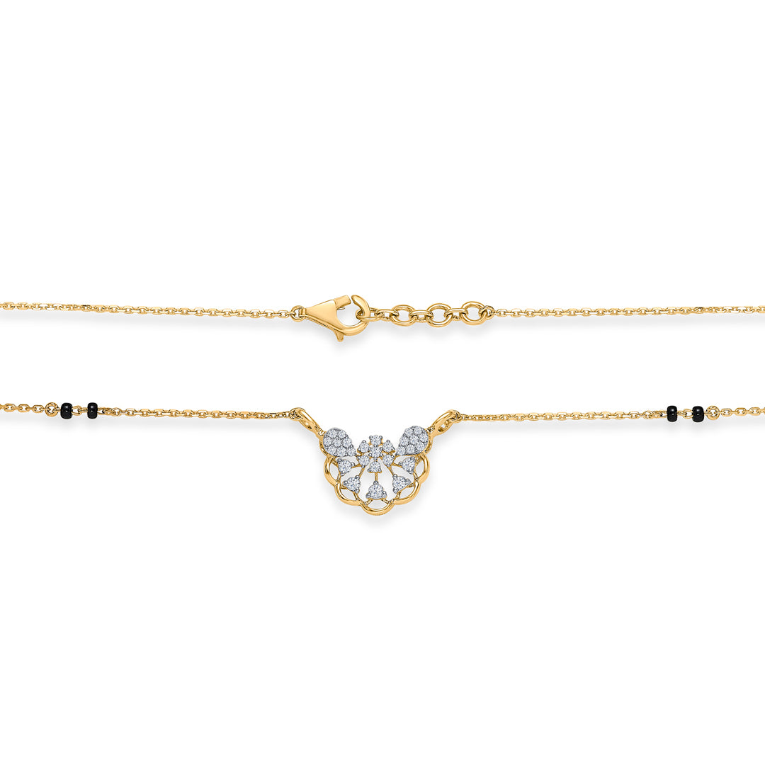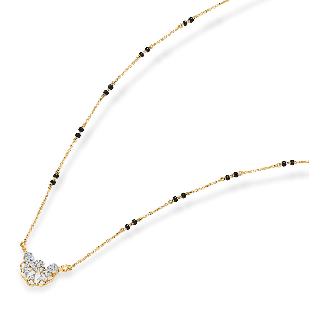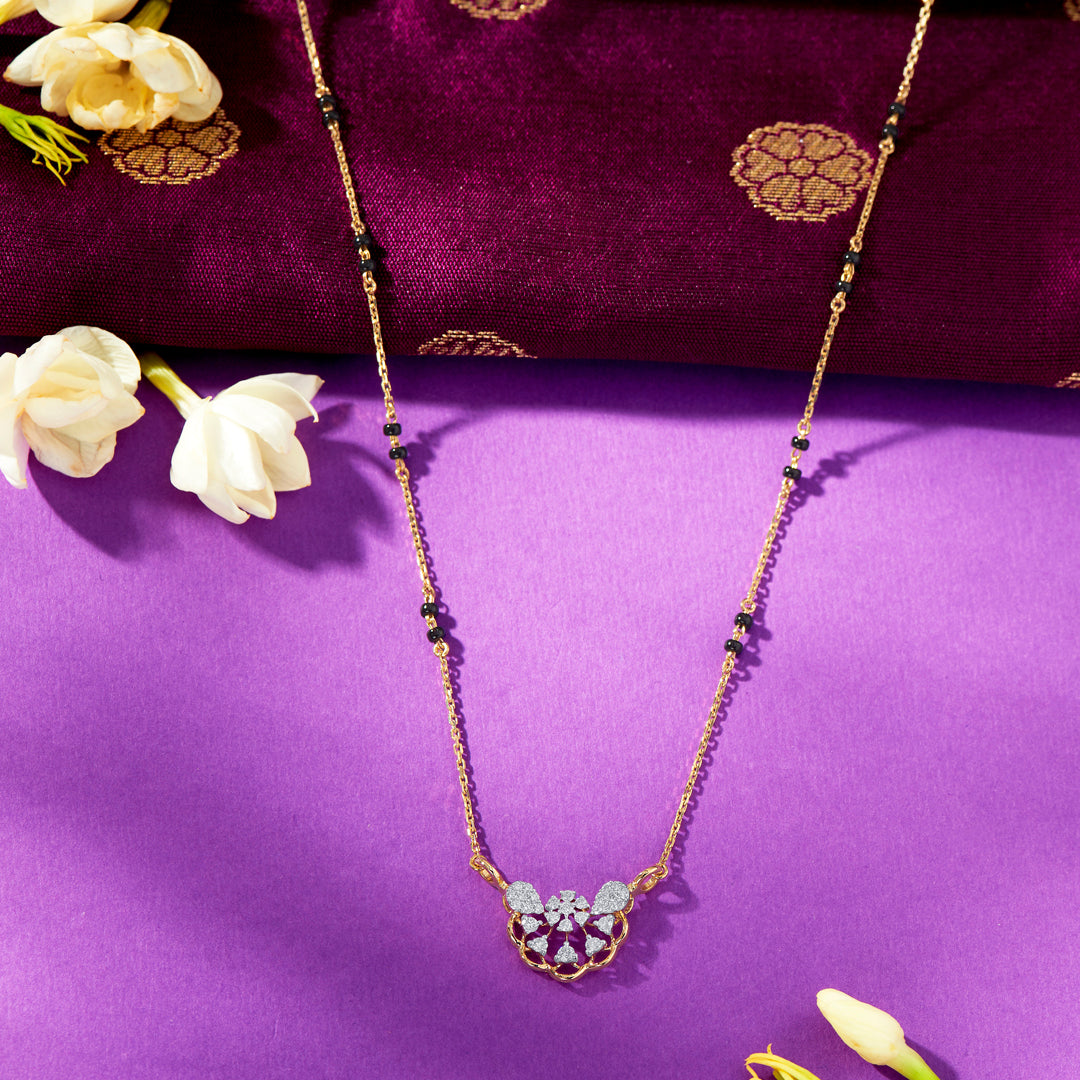 Celebrate timeless elegance with this floral mangalsutra, designed for the modern woman who cherishes tradition. Delicate floral motifs blend with classic black beads, symbolizing love and harmony.