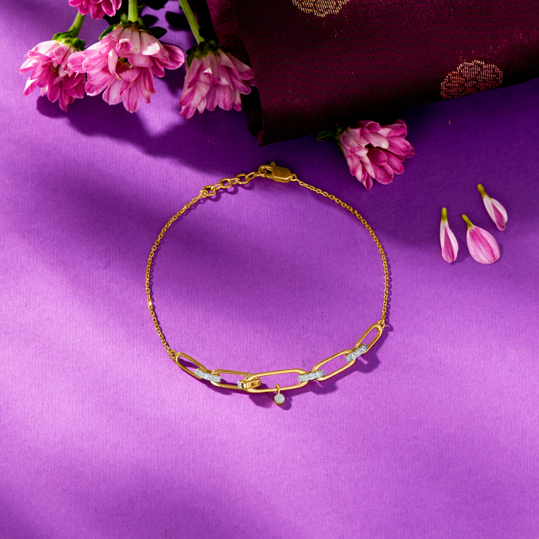 Check out our Gold & Diamond Charm Bracelet, perfect for every woman. With BIS-certified purity, it's ideal for daily wear or as a special gift. Great for birthdays, anniversaries, or Rakshabandhan, this ring is made to be treasured. It's versatile enough for festive and casual looks, adding elegance to any outfit. You'll receive it in secure, tamper-proof packaging, ensuring safety and peace of mind. Additionally, it comes with a lifetime warranty and a convenient buyback policy at our stores across India, making it the perfect thoughtful gift.