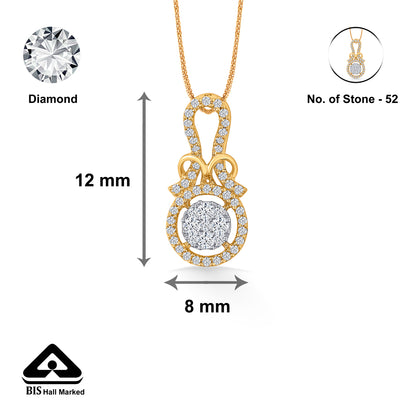 Check out our 18 Karat Gold & Diamond Casual Pendant, perfect for every woman. With BIS-certified purity and adorned with VVS-FG Certified clarity diamonds, it's ideal for daily wear or as a special gift. Great for birthdays, anniversaries, or Rakshabandhan, this ring is made to be treasured. It's versatile enough for both festive and casual looks, adding elegance to any outfit. You'll receive it in secure, tamper-proof packaging, ensuring safety and peace of mind. Additionally, it comes with a lifetime warranty and a convenient buyback policy at our stores across India, making it the perfect thoughtful gift.