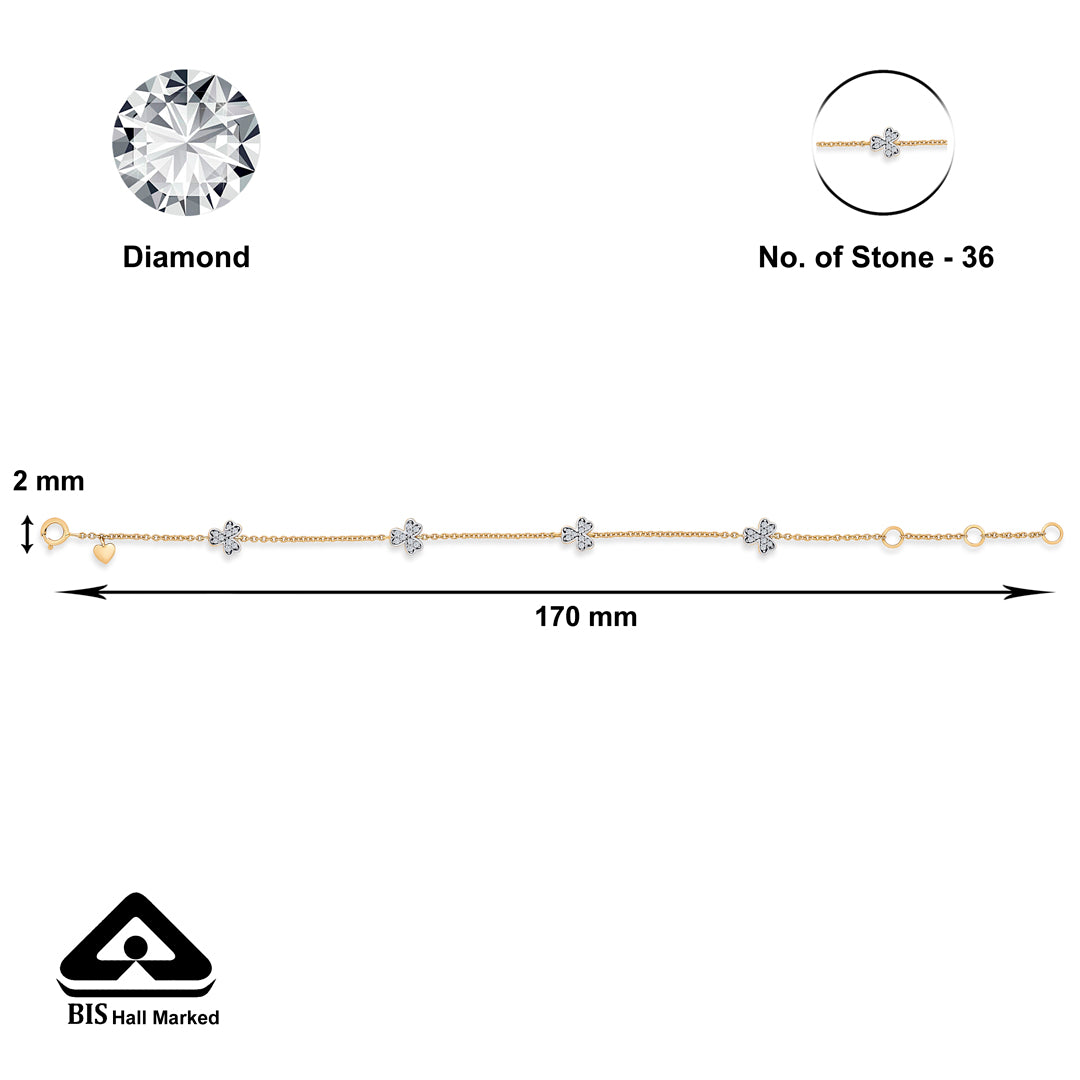 Check out our 18 Karat Gold & Diamond Flexible Bracelet, perfect for every woman. With BIS-certified purity and adorned with 36 Pcs of IJ/SI Certified clarity diamonds, it's ideal for daily wear or as a special gift. Great for birthdays, anniversaries, or Rakshabandhan, this ring is made to be treasured. It's versatile enough for both festive and casual looks, adding elegance to any outfit. You'll receive it in secure, tamper-proof packaging, ensuring safety and peace of mind. Additionally, it comes with a lifetime warranty and a convenient buyback policy at our stores across India, making it the perfect thoughtful gift.