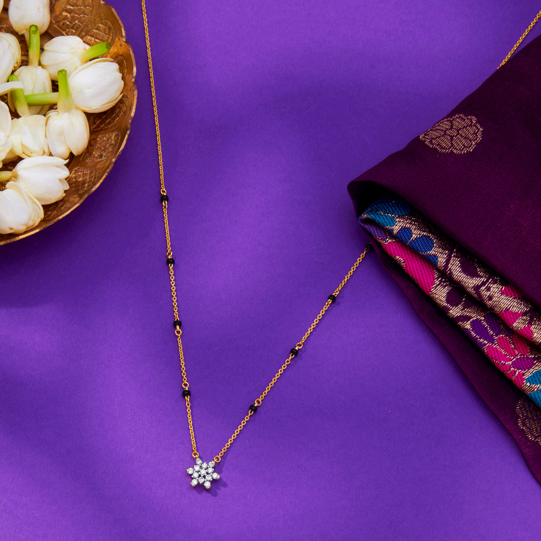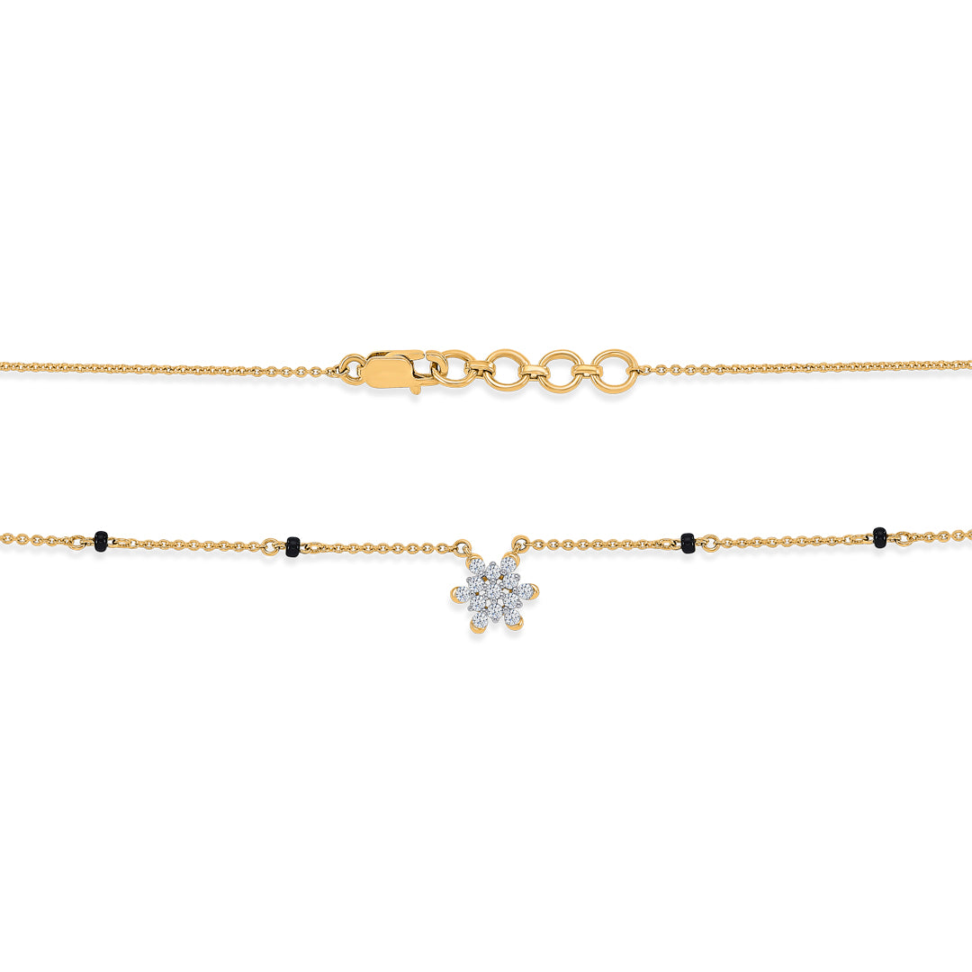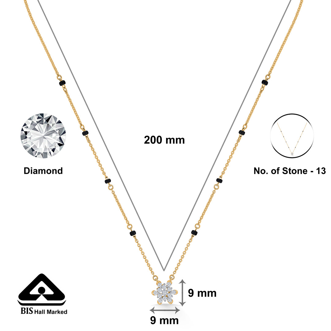Check out our 18 Karat Gold & Diamond mangalsutra, perfect for every woman. With BIS-certified purity and adorned with VVS-FG Certified clarity diamonds, it's ideal for daily wear or as a special gift. Great for birthdays, and anniversaries, this Mangalsutra is made to be treasured. It's versatile enough for festive and casual looks, adding elegance to any outfit. You'll receive it in secure, tamper-proof packaging, ensuring safety and peace of mind. Additionally, it comes with a lifetime warranty and a convenient buyback policy at our stores across India, making it the perfect thoughtful gift.