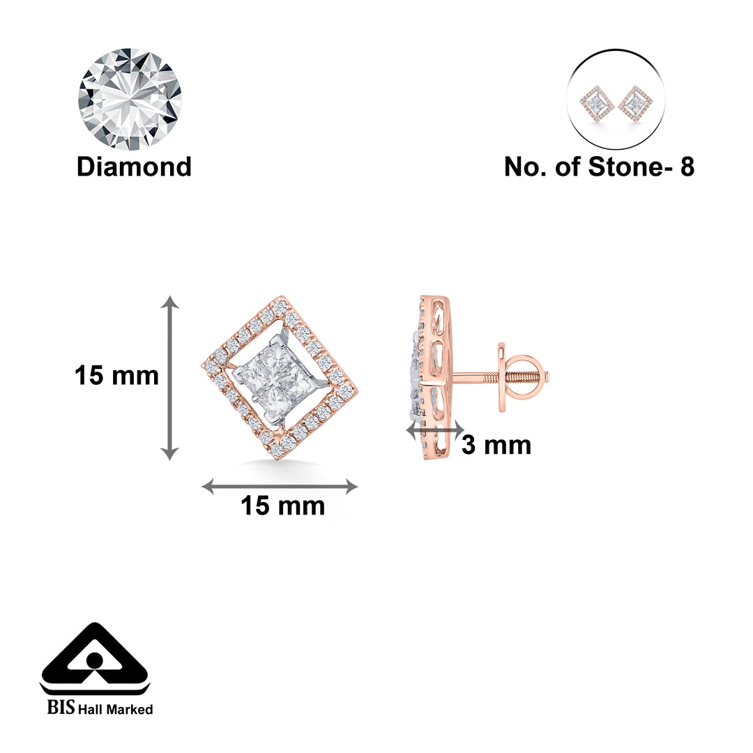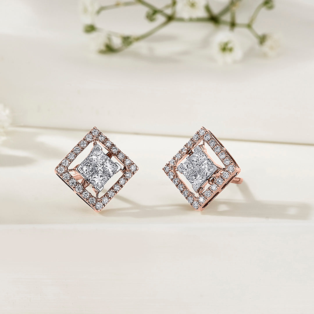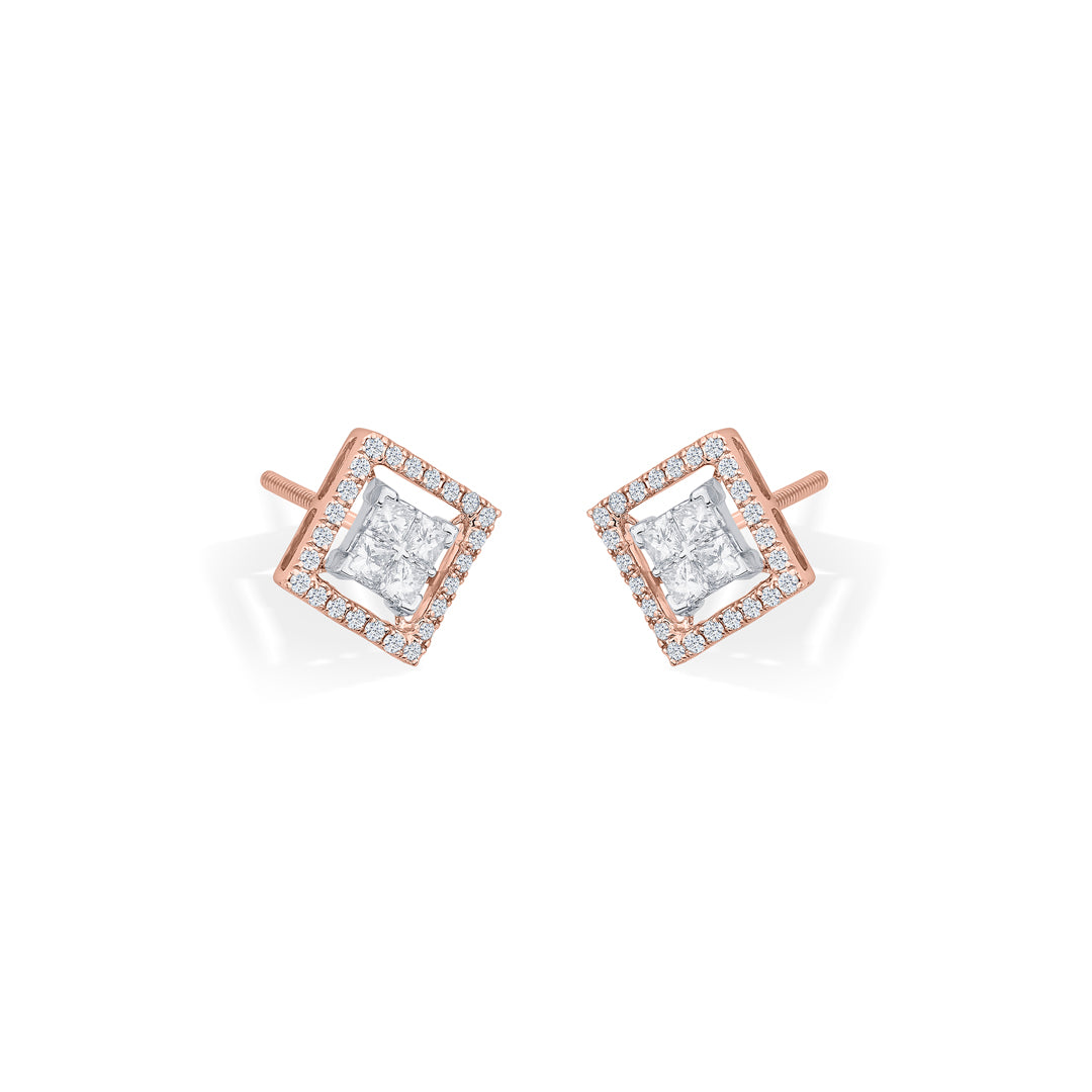 These diamond earrings showcase a modern design that combines elegance with simplicity. Set in a chic gold frame, the sparkling diamonds catch the light beautifully. Ideal for everyday wear or special occasions, these earrings are lightweight and comfortable, making them a versatile addition to your jewellery collection.