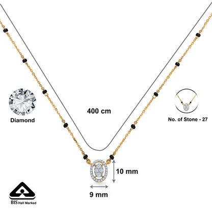 Elevate your elegance with this stunning diamond mangalsutra, crafted for the modern woman who values tradition with a contemporary touch. The shimmering diamonds add a radiant sparkle, perfectly complementing the classic black beads.