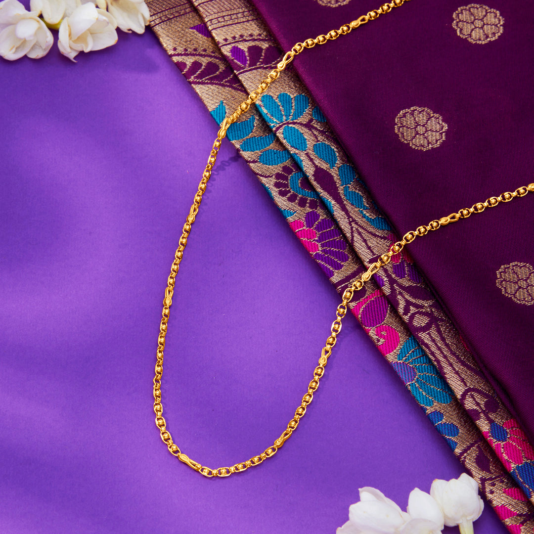 This Eternal Glow Chain is made in 22 Karat (916) BSI Hallmarked Purity of Gold. Jewellery comes with inscription of Gold, Purity , Jeweller's Identity Name.This is perfect for casual wear and ideal for festive gifting.