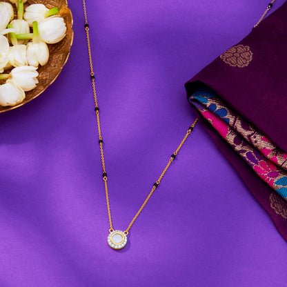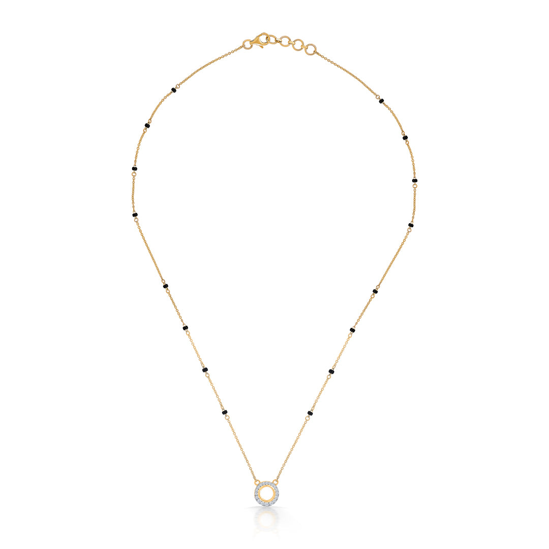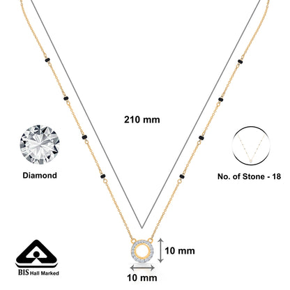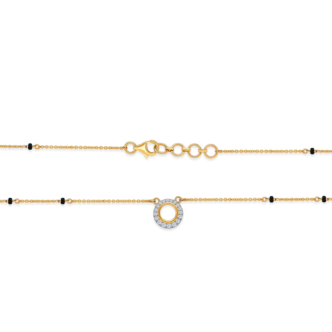 Check out our 18 Karat Gold & Diamond mangalsutra, perfect for every woman. With BIS-certified purity and adorned with VVS-FG Certified clarity diamonds, it's ideal for daily wear or as a special gift. Great for birthdays, and anniversaries, this Mangalsutra is made to be treasured. It's versatile enough for festive and casual looks, adding elegance to any outfit. You'll receive it in secure, tamper-proof packaging, ensuring safety and peace of mind. Additionally, it comes with a lifetime warranty and a convenient buyback policy at our stores across India, making it the perfect thoughtful gift.