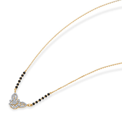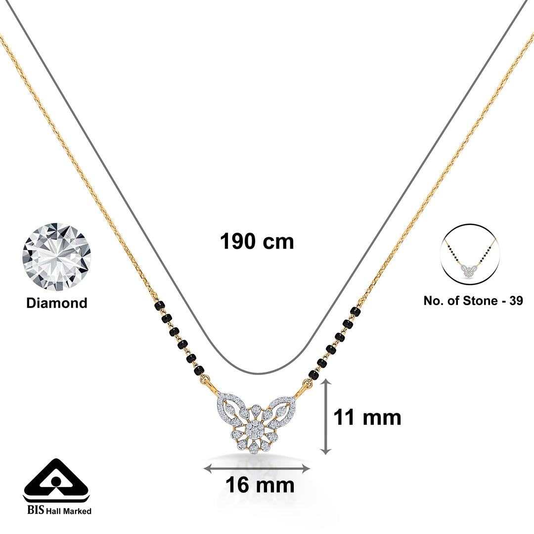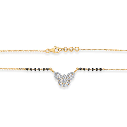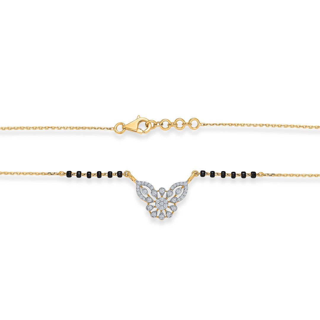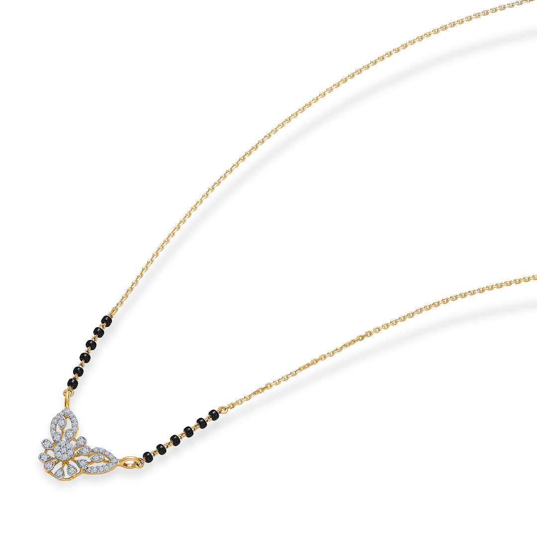Elevate your elegance with this stunning diamond mangalsutra, crafted for the modern woman who values tradition with a contemporary touch. The shimmering diamonds add a radiant sparkle, perfectly complementing the classic black beads.
