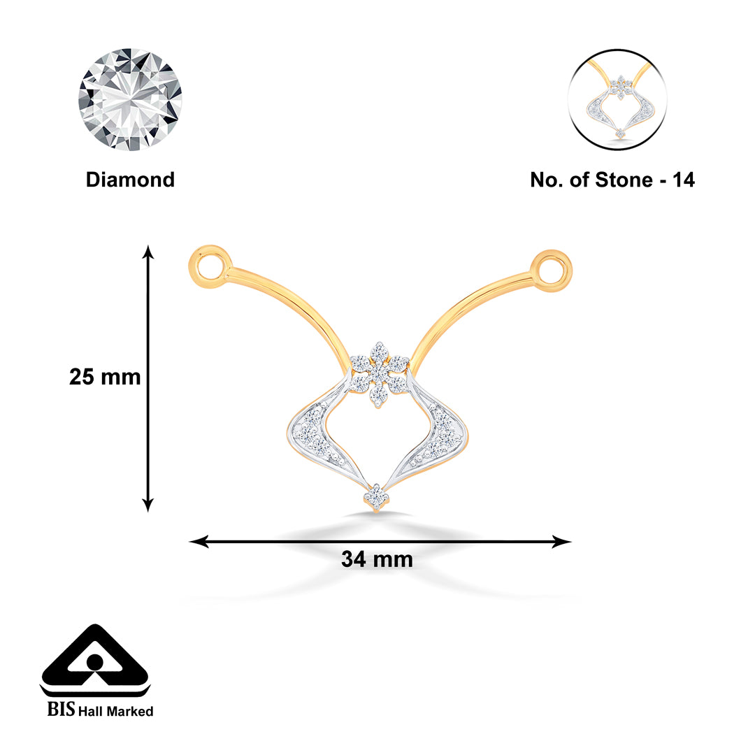 Check out our 18 Karat Gold & Diamond Tanmaniya Mangalsutra, perfect for every woman. With BIS-certified purity and adorned with 14 Pcs of FG/VVS Certified clarity diamonds, it's ideal for daily wear or as a special gift. Great for birthdays, anniversaries, or Rakshabandhan, this ring is made to be treasured. It's versatile enough for both festive and casual looks, adding elegance to any outfit. You'll receive it in secure, tamper-proof packaging, ensuring safety and peace of mind. Additionally, it comes with a lifetime warranty and a convenient buyback policy at our stores across India, making it the perfect thoughtful gift.