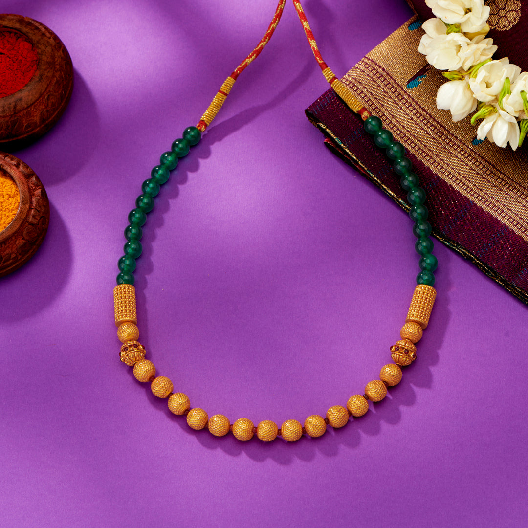 Green Amulet Yellow Gold Thushi Necklace For Woman