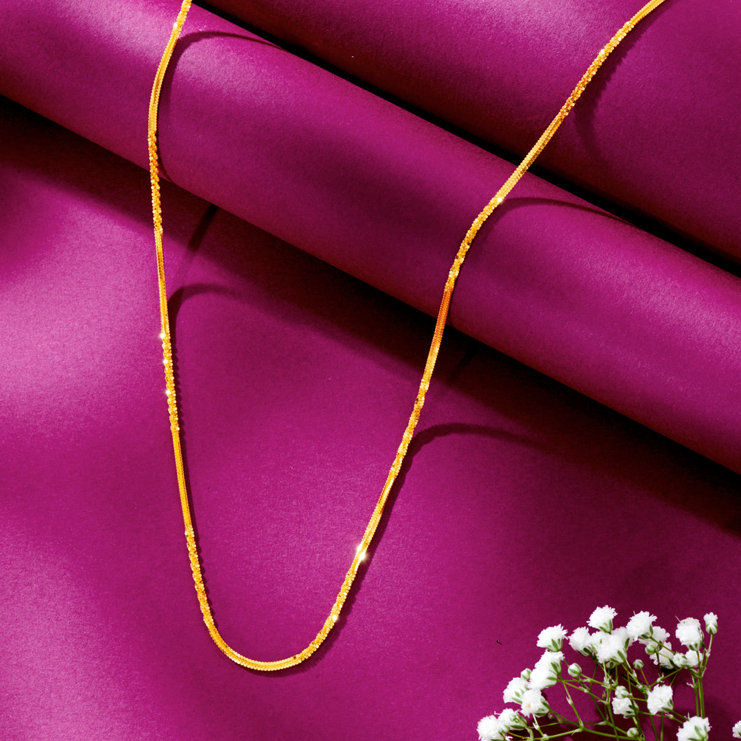 Check out our 22 Karat (916) Gold Chain. It's ideal for daily wear or as a special gift. Great for birthdays, anniversaries, or Rakshabandhan, this Gold Chain is made to be treasured. It's versatile enough for both festive and casual looks, adding elegance to any outfit. You'll receive it in secure, tamper-proof packaging, ensuring safety and peace of mind. Additionally, it comes with a lifetime warranty and a convenient buyback policy at our stores across India, making it the perfect thoughtful gift.