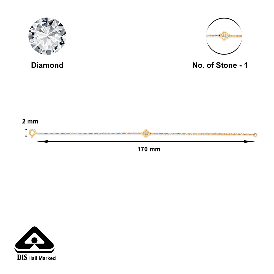 Check out our 14 Karat Gold & Diamond Flexible Bracelet, perfect for every woman. With BIS-certified purity and adorned with 1 Pcs of IJ/SI Certified clarity diamonds, it's ideal for daily wear or as a special gift. Great for birthdays, anniversaries, or Rakshabandhan, this ring is made to be treasured. It's versatile enough for both festive and casual looks, adding elegance to any outfit. You'll receive it in secure, tamper-proof packaging, ensuring safety and peace of mind. Additionally, it comes with a lifetime warranty and a convenient buyback policy at our stores across India, making it the perfect thoughtful gift.