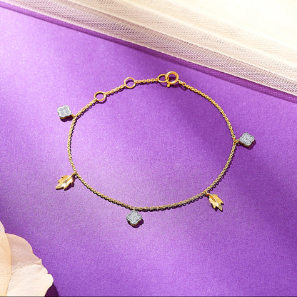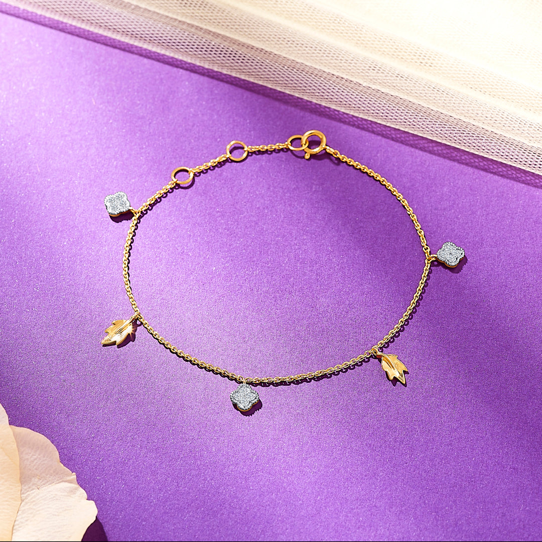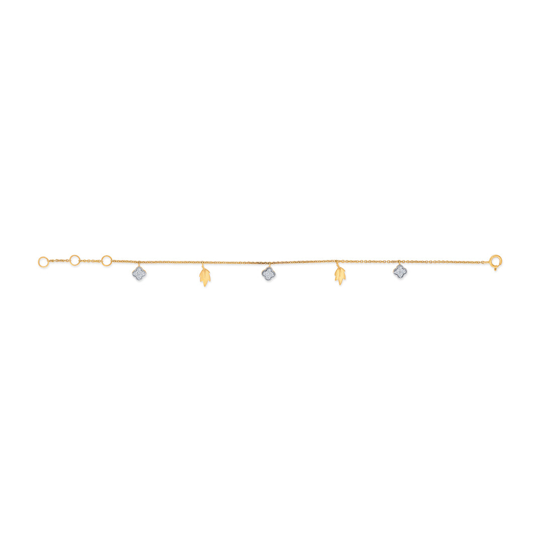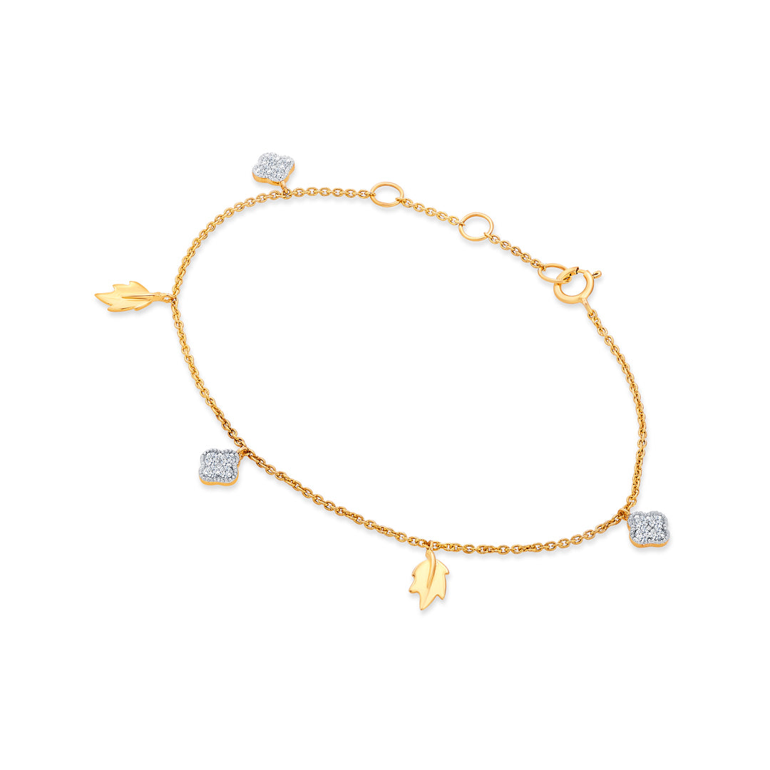 Leaf Yellow Gold & Diamond Charm Ladies Bracelet
