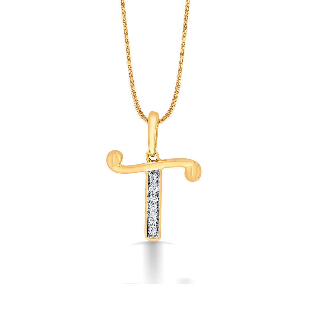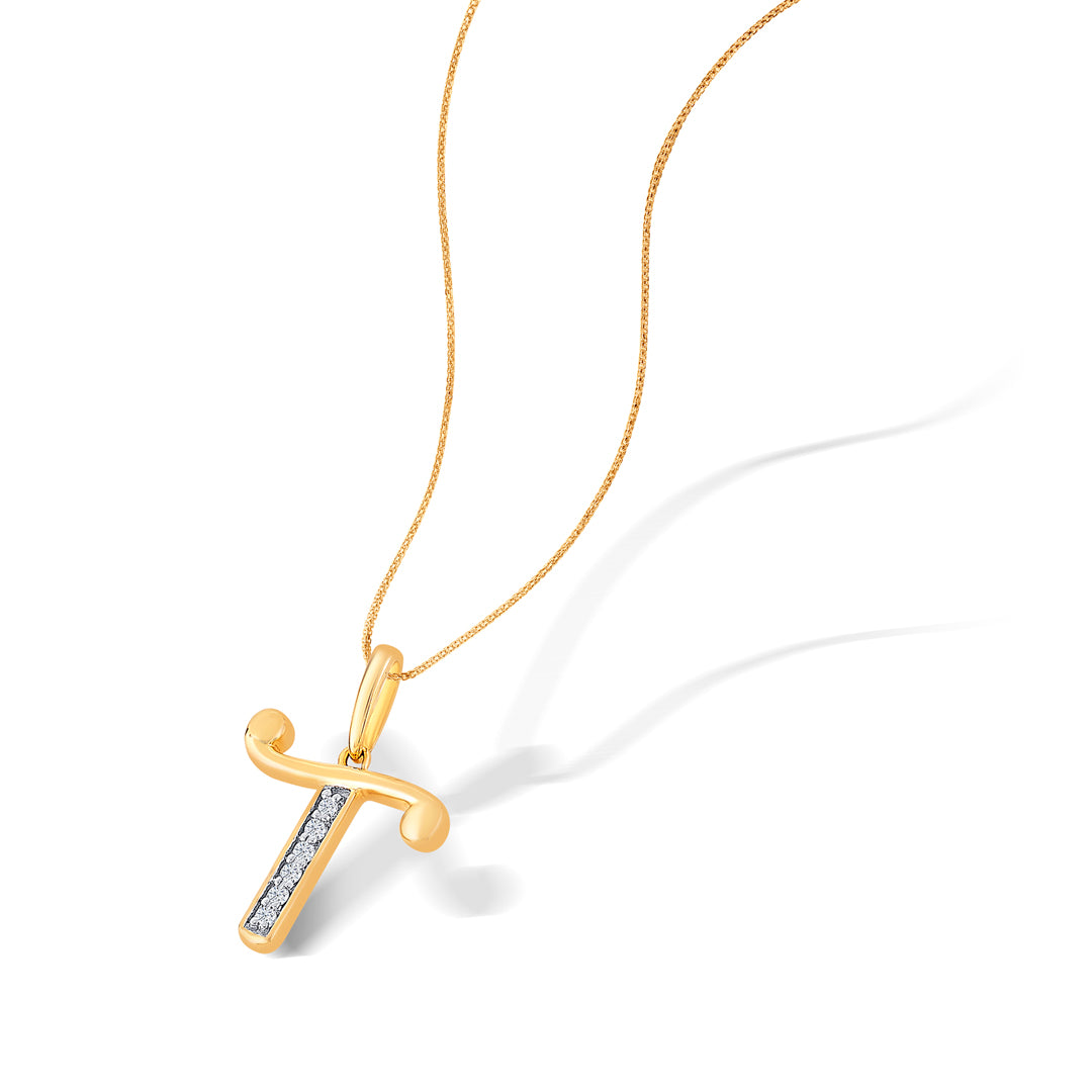 Letter T Yellow Gold & Diamond Casual Pendant