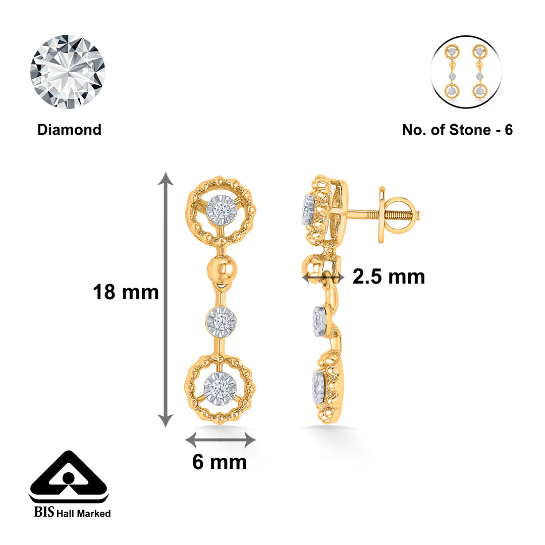 Check out our 18 Karat Gold & Diamond Earring, perfect for every woman. With BIS-certified purity and adorned with VVS-FG Certified clarity diamonds, it's ideal for daily wear or as a special gift. Great for birthdays, anniversaries, or Rakshabandhan, this Earring is made to be treasured. It's versatile enough for both festive and casual looks, adding elegance to any outfit. You'll receive it in secure, tamper-proof packaging, ensuring safety and peace of mind. Additionally, it comes with a lifetime warranty and a convenient buyback policy at our stores across India, making it the perfect thoughtful gift.