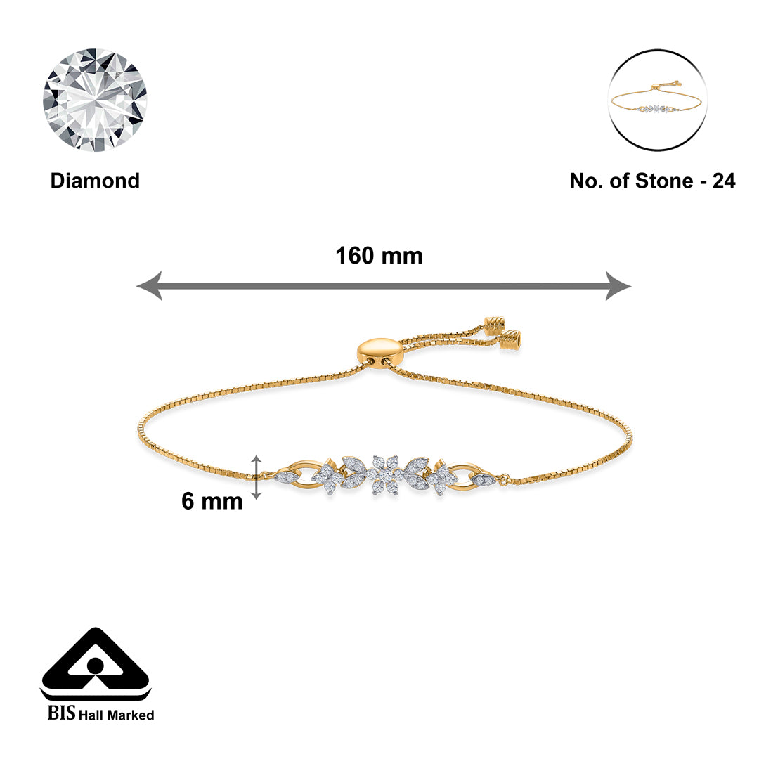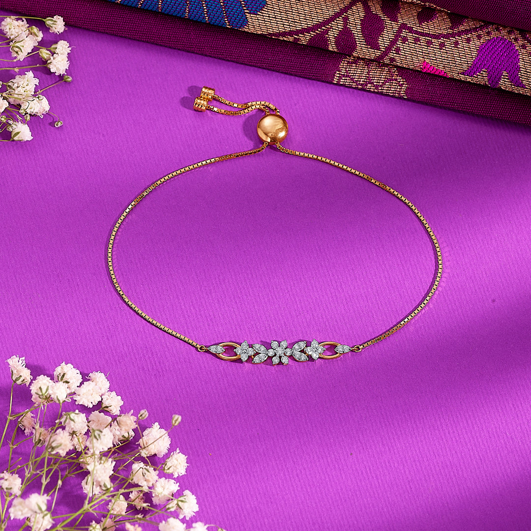 Check out our 18 Karat Gold & Diamond Charm Bracelet, perfect for every woman. With BIS-certified purity and adorned with VVS-FG Certified clarity diamonds, it's ideal for daily wear or as a special gift. Great for birthdays, anniversaries, or Rakshabandhan, this ring is made to be treasured. It's versatile enough for both festive and casual looks, adding elegance to any outfit. You'll receive it in secure, tamper-proof packaging, ensuring safety and peace of mind. Additionally, it comes with a lifetime warranty and a convenient buyback policy at our stores across India, making it the perfect thoughtful gift.